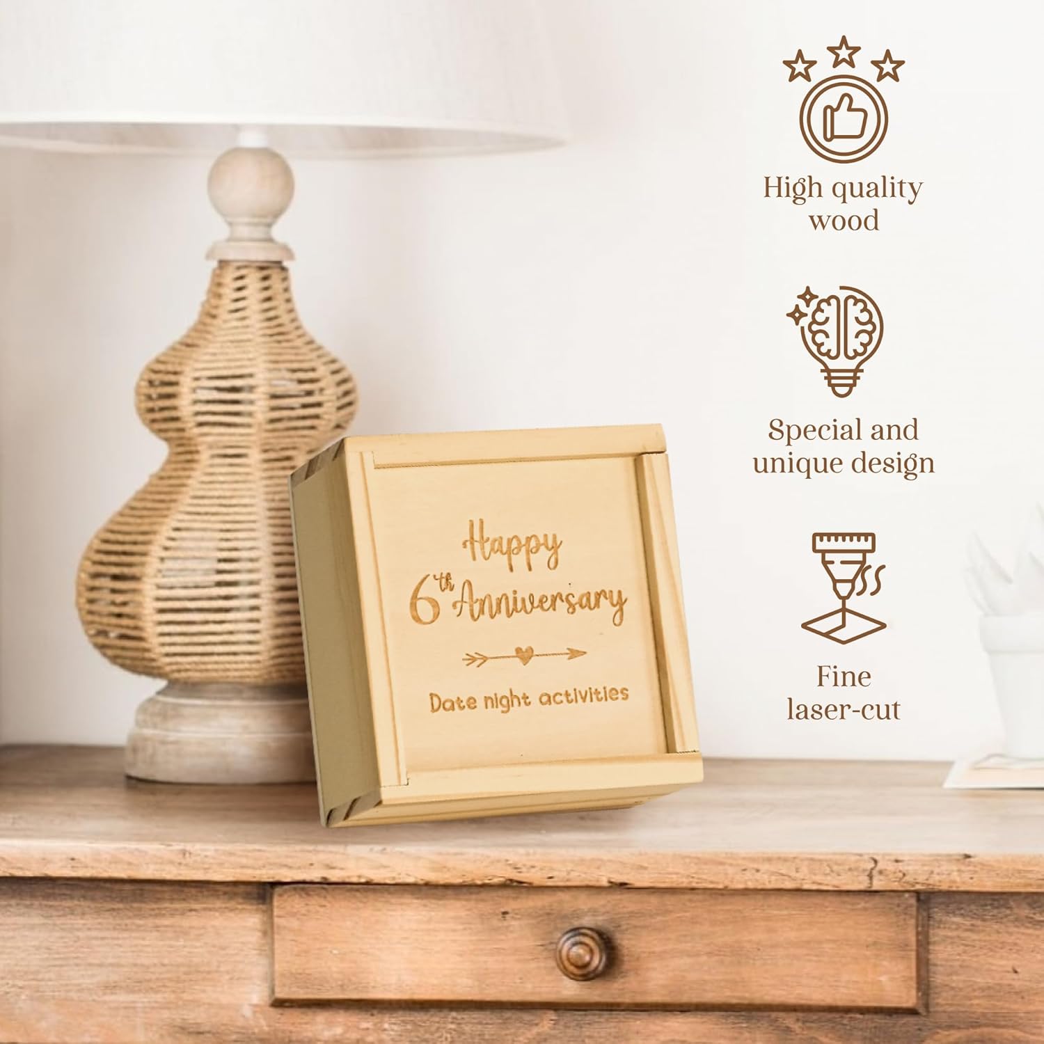 - UNIQUE 6 YEAR ANNIVERSARY WOOD GIFTS: Celebrate your happy day with our anniversary gifts 6 years! The set is ideal as 6 year anniversary gifts for her, 6th anniversary gifts for him, or 6th wedding anniversary gifts for couples, Valentine’s Day gifts
