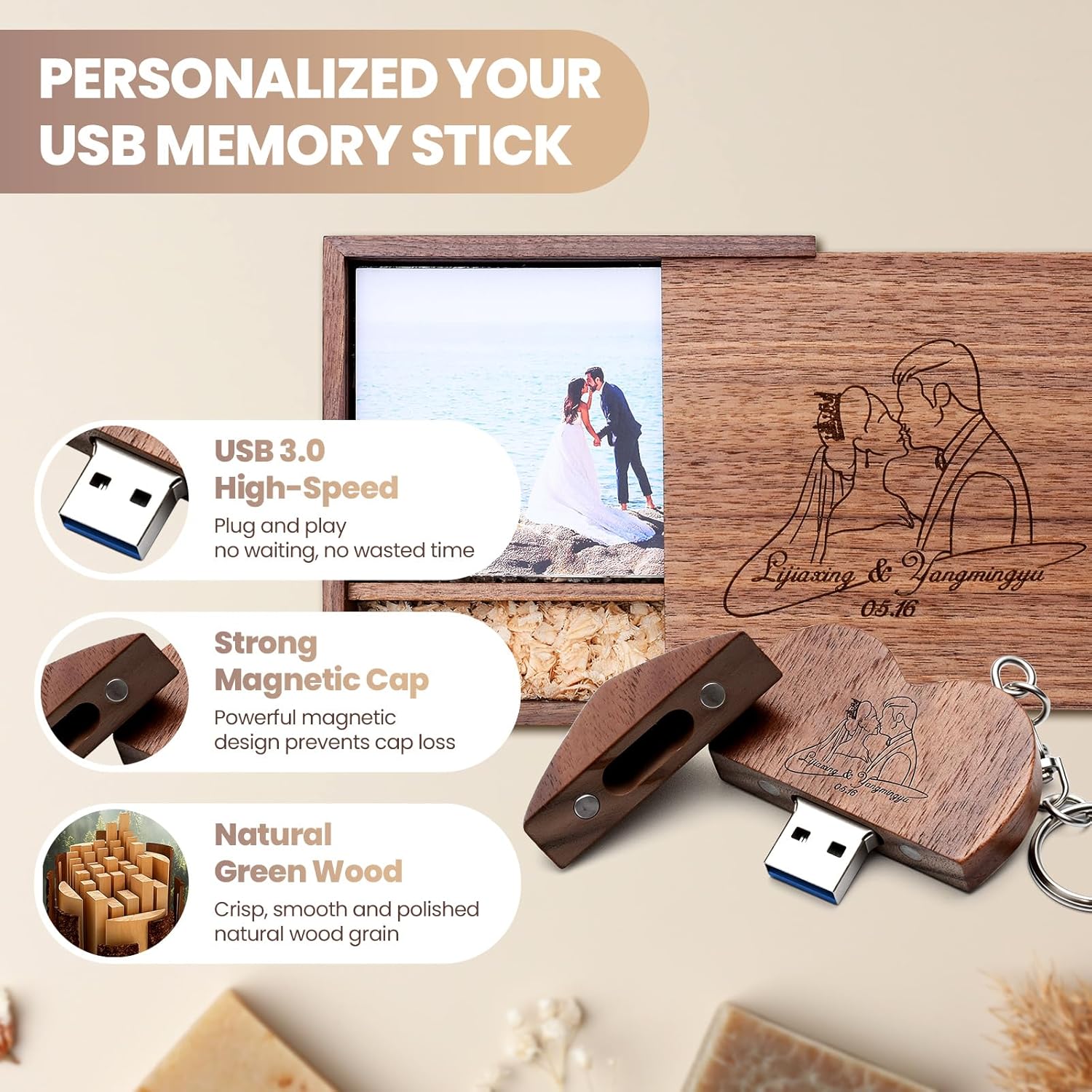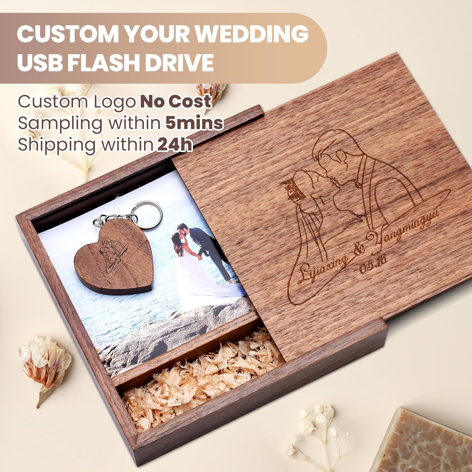 Be the first to review “64GB Custom Wood USB 3.0 Flash Drive with Album Box, Wedding Thumb Drives, Personalized Heart-Shape Memory Sticks, Engraving/Printing Your Logo & Text for Graduation/Birthday/Parents/Photography”