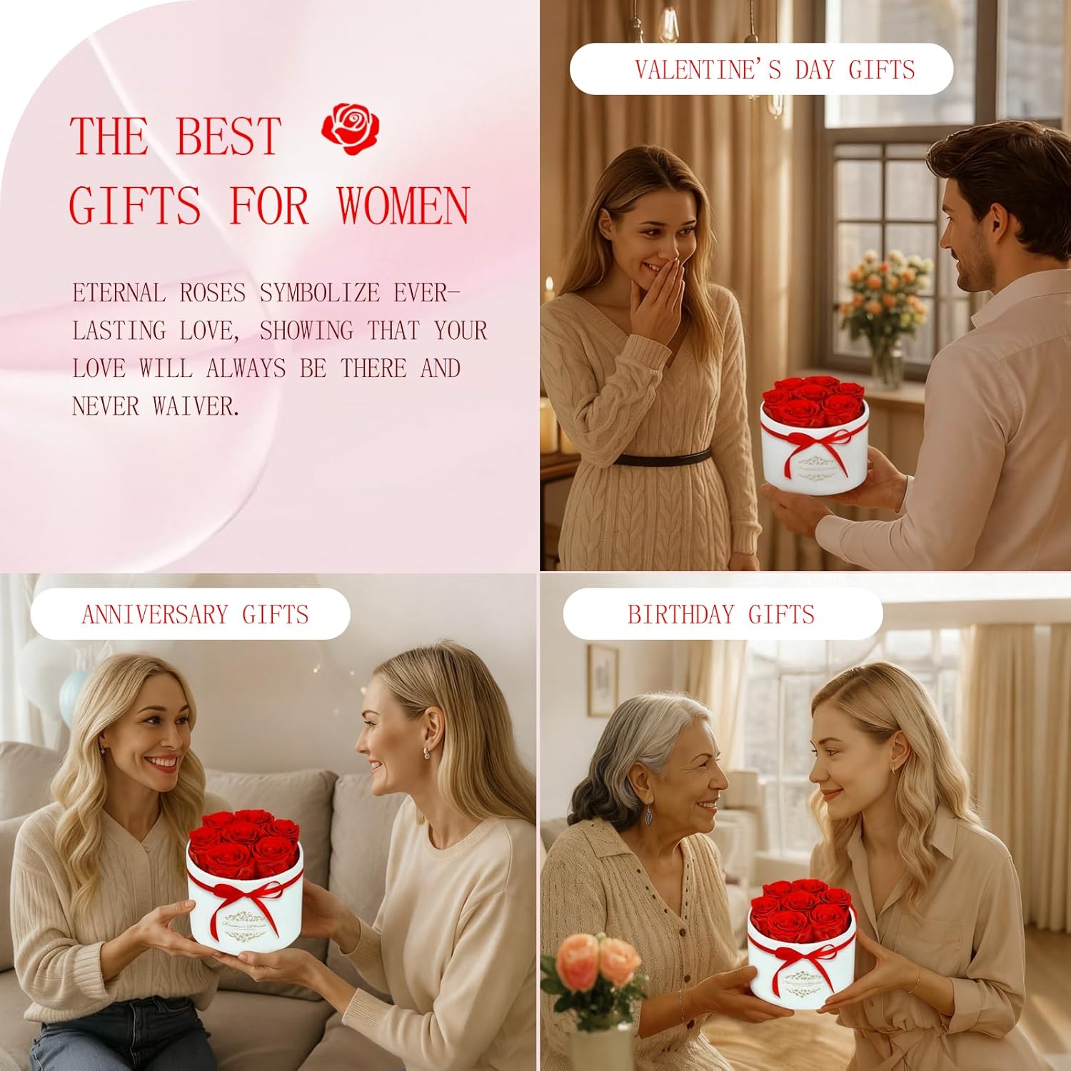 - Perfect Gifts for Women: Express your deepest love and gratitude with this luxurious preserved roses gift box. Whether it’s a birthday, anniversary, Valentine’s Day, wedding, or other special occasion, this heartfelt gifts will touch the heart of your wife, girlfriend, mother, best friend or partner