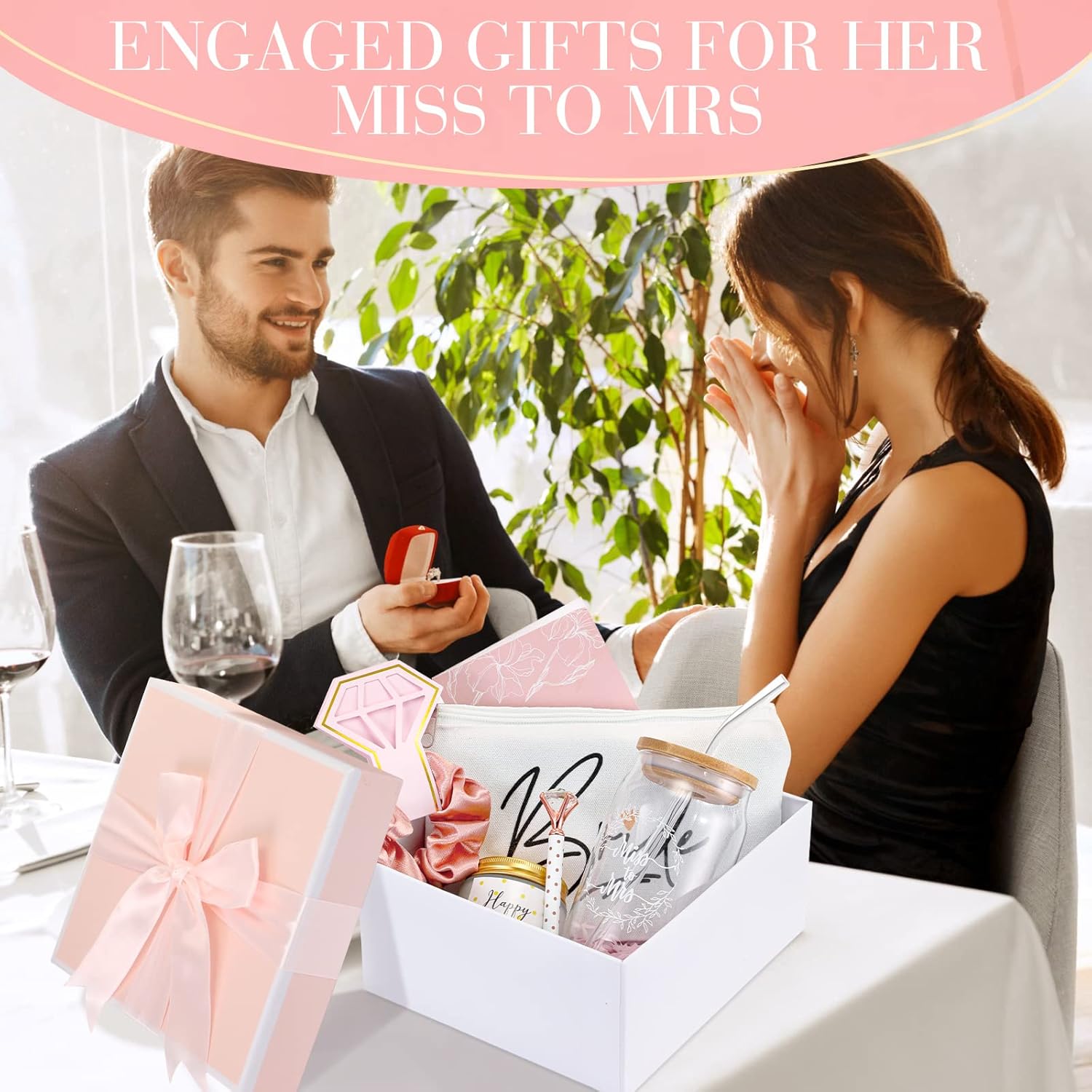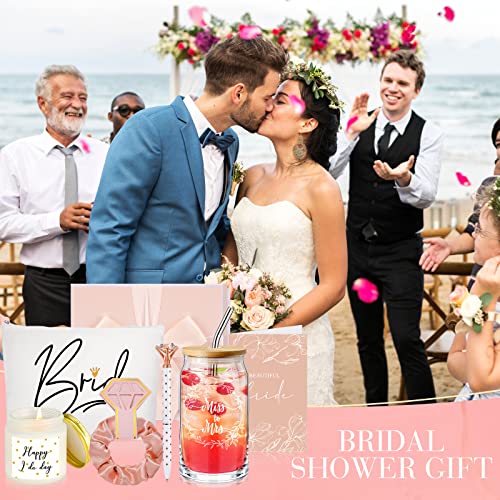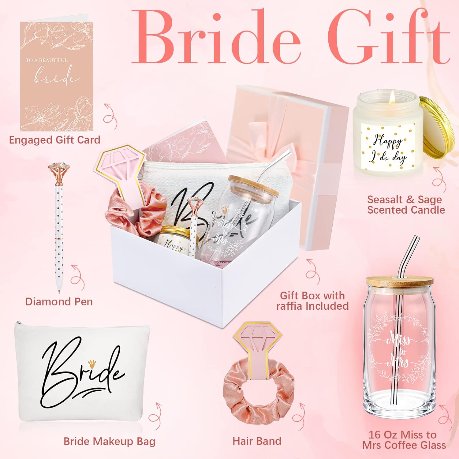 - Wedding Gifts for Bride: the package includes 1 pc of can shaped drinking glass with straw, 1 pc of bride makeup bag, 1 pc of crystal pen, 1 pc of scented candle, 1 pc of scrunchies, 1 pc of wedding card and 1 pc of gift box with raffia, the content is rich and varied, suitable for future bride, newly engaged best friend, bestie, best friend, sister, daughter, co worker or other brides