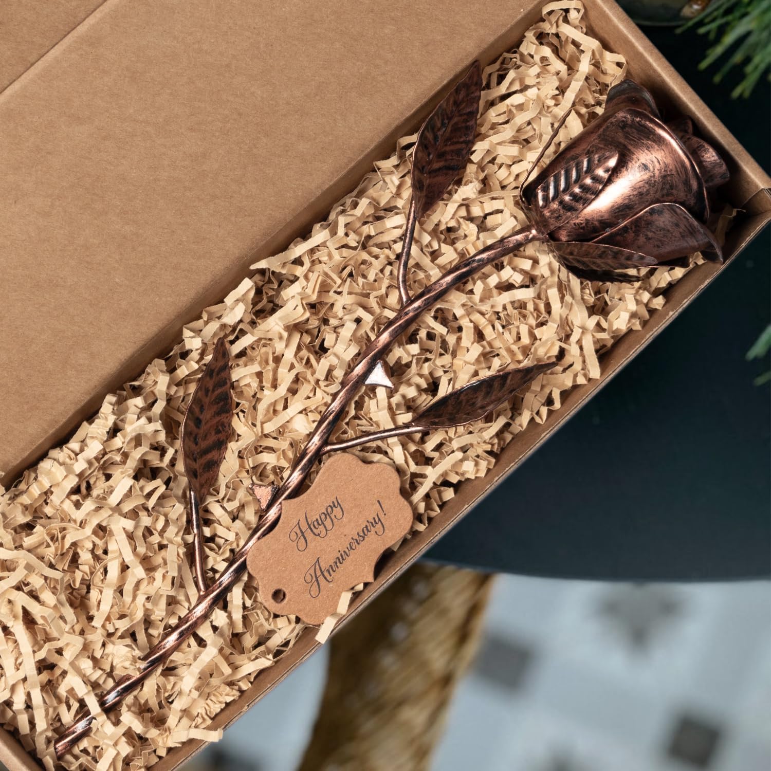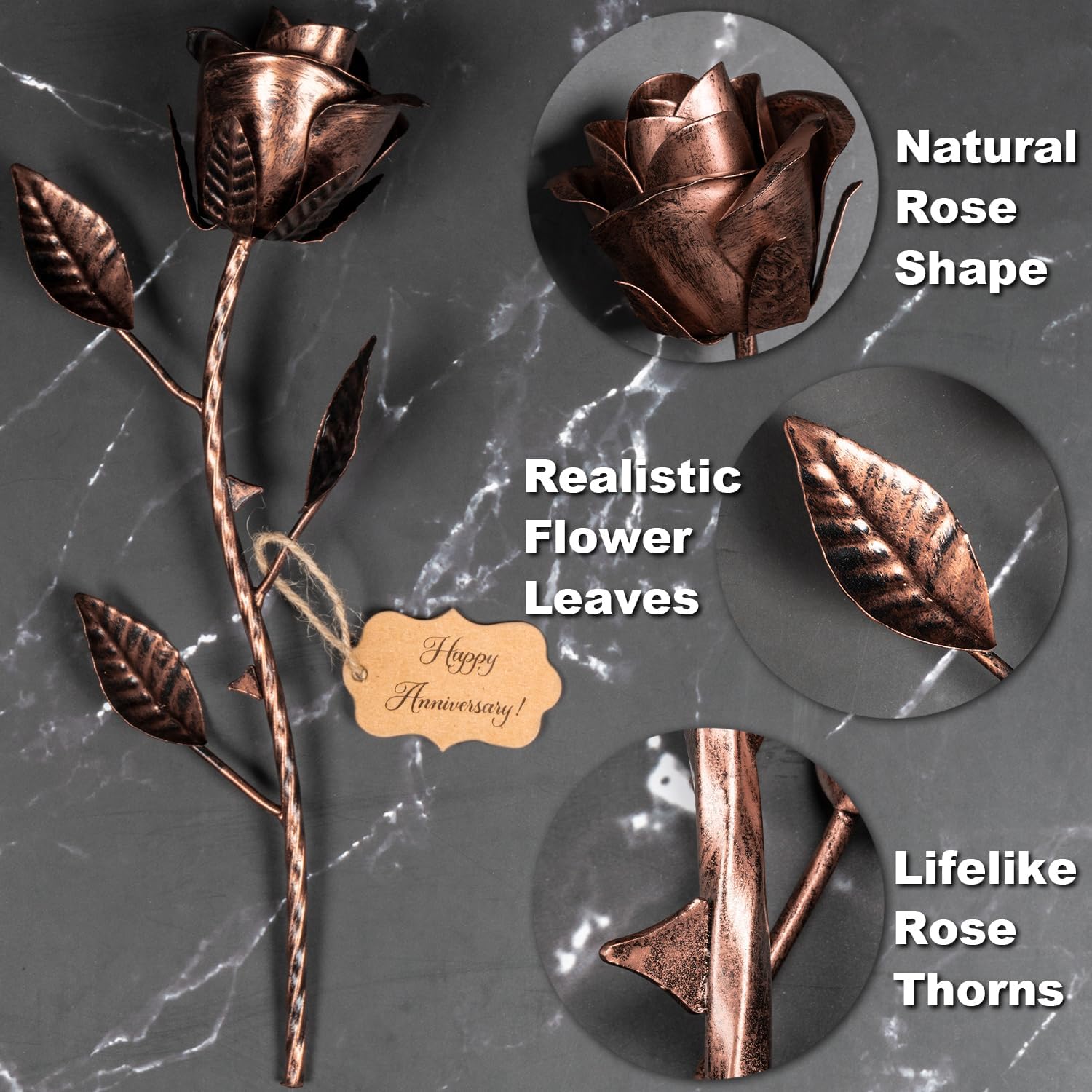 - Meaningful Keepsakes: Different from the everyday kind of gift, these 7 year wedding anniversary copper gifts for wife are hand-cast to perfection in every detail. Featuring every realistic detail of a rose, a true milestone memento! Also the ideal copper anniversary gifts for him. Ready to gift! Gift box: 12×3.6×3.6 inches