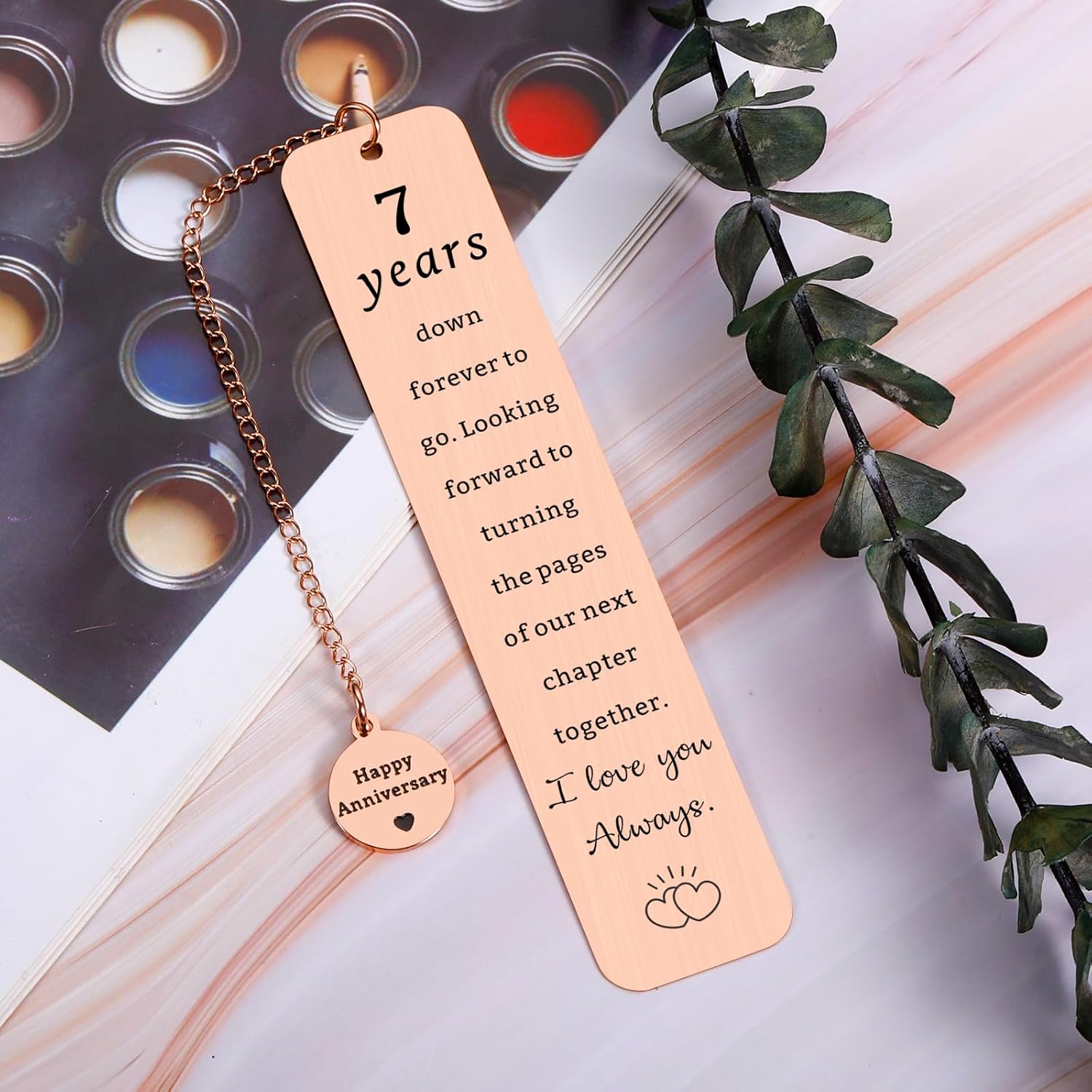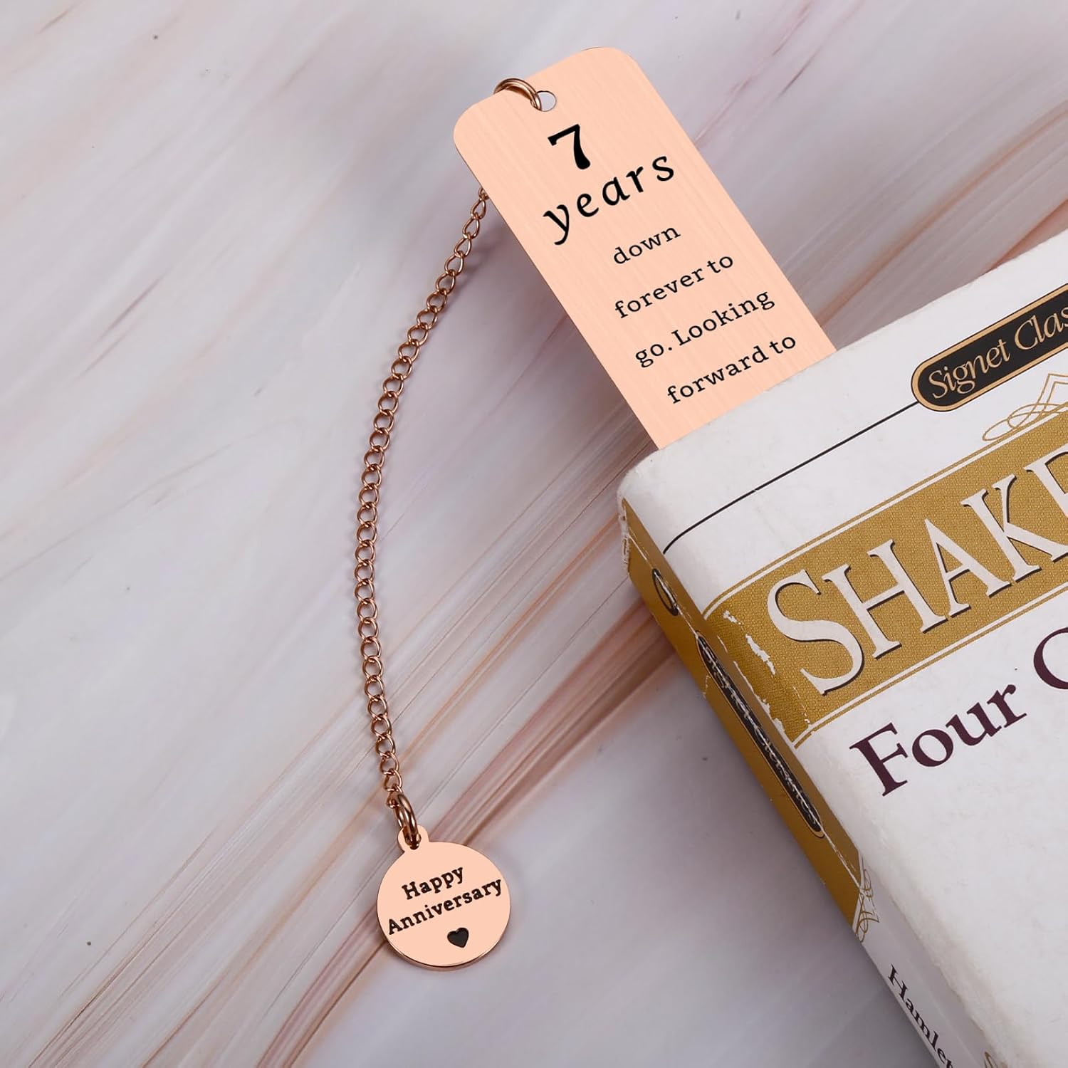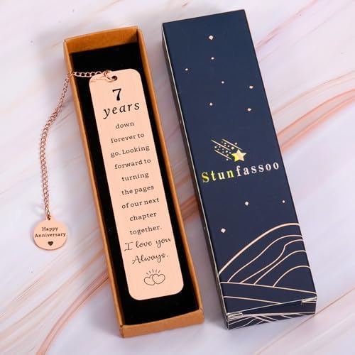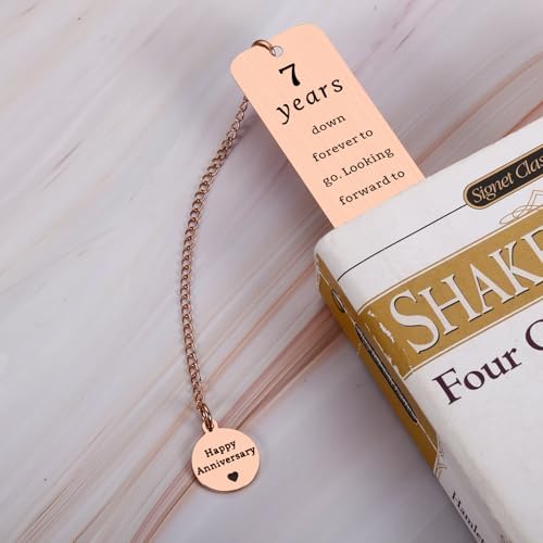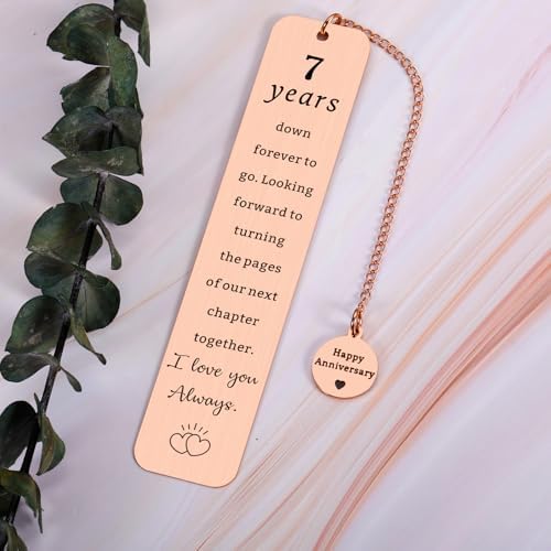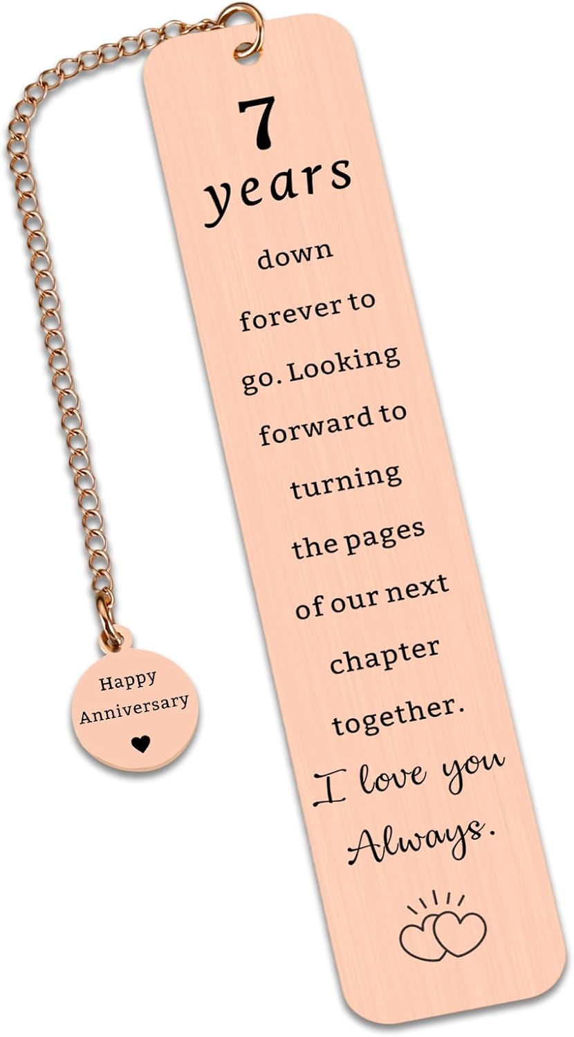 - Copper Anniversary Gifts for Men Women — Copper may tarnish, but these seven years have only polished our bond to a warmer, richer glow. A delicated bookmark is a great gift to celebrate the 7th anniversary. This gift makes the surprising day for wife/ husband/ boyfriend/ girlfriend. Elegant as 7th anniversary gifts, 7th anniversary wedding commemorative gifts, happy anniversary gifts, copper gifts for 7th anniversary to have a unforgettable and fun day.