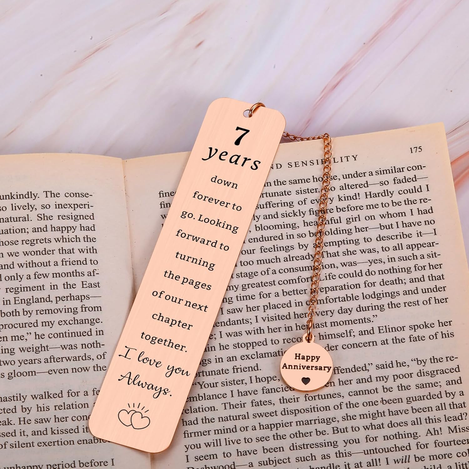 - High Quality Bookmark with Chain–①Made of eco-friendly & safe stainless steel material; smooth surface with good touch feeling. ②No rust; No fading; Sturdy and strong enough to last long time! ③ An exquisite bookmark with a happy anniversary pendant chain ④Product Size: 5.11*1.02 inch; thickness: 0.02inch; ⑤Come in a nice gift box, perfect for giving. ⑥If you have any questions on your orders, just feel free to contact us and we will make it right!