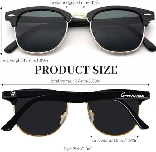 • CLASSIC DESIGN: The groomsmen proposal sunglasses are printed with classic tuxedo patterns and “groomsman”, bachelor party sunglasses are powder coated that delivers elegant look and makes it feel smooth to touch help your groomsmen look more attractive at your big day.