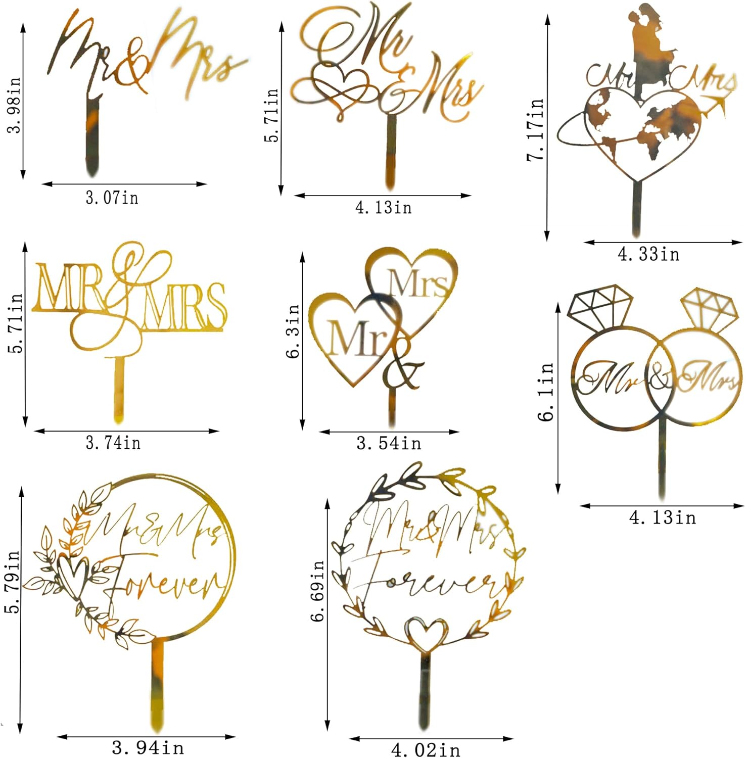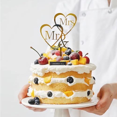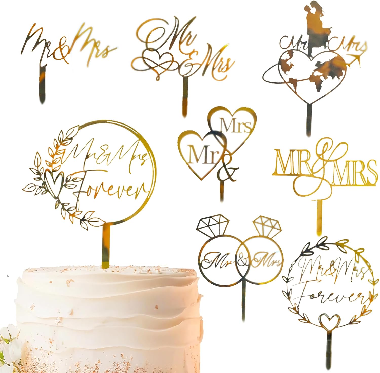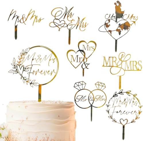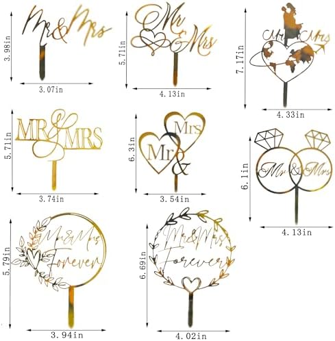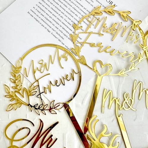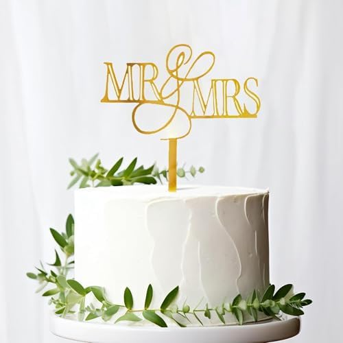 10 Pcs Mr and Mrs Cake Topper, Gold Acrylic Wedding Cake Toppers, Personalized Wedding Cake for Wedding, Engagement, AnniversaryBridal Shower Cake Decoration