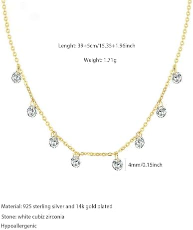 925 sterling silver cubic zirconia station necklaces for women dainty 14k gold plated simulated diamond pendant necklace round crystal tennis chain to daughter wedding prom brides jewelry birthday anniversary mothers day christmas valentines day party graduation back to school gifts for wife sister friends grandma granddaughters