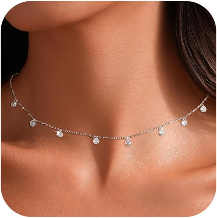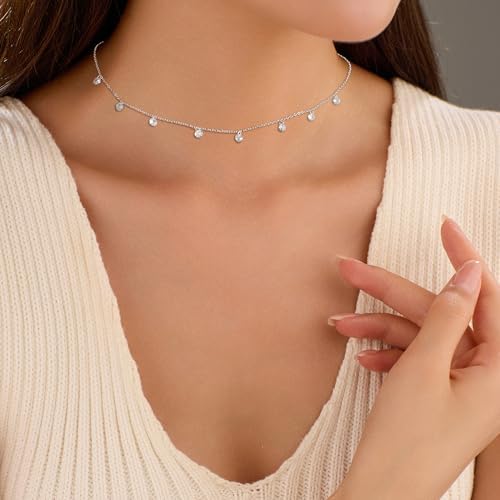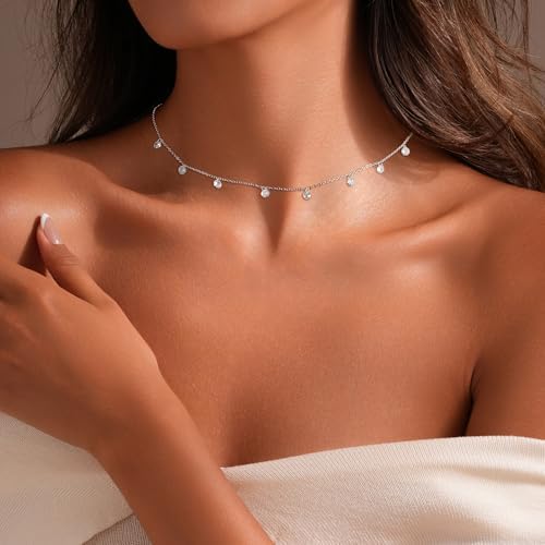 - Size of Women’s Necklace: Length of the dainty simulated diamond station necklace is 15″+1″(39 cm+5 cm), round cubic zirconia is 0.4 cm, weight is 1.71g. The extension chains allow to adjust suitable length that you need. The everyday necklace is comfortable to wear