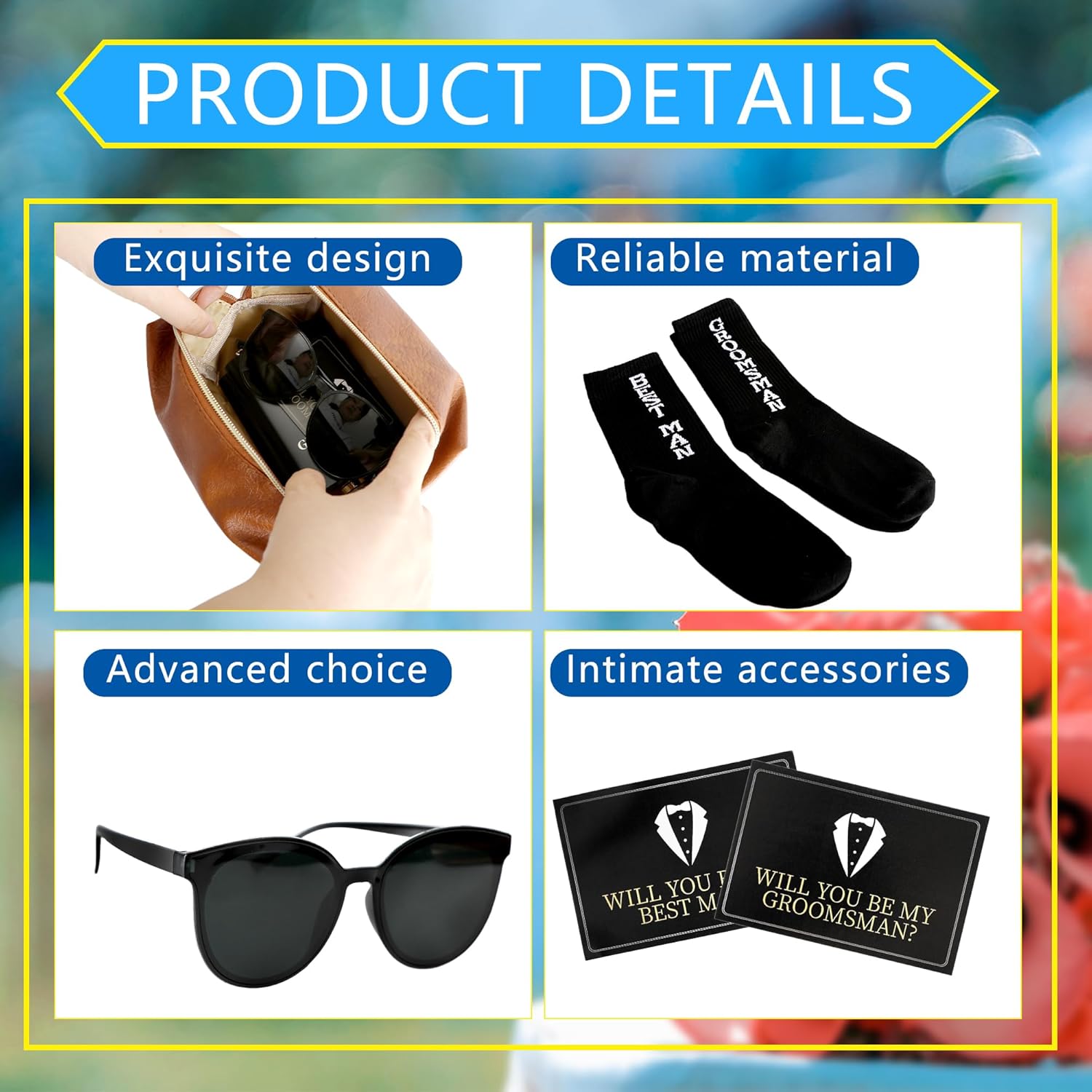 - ✅Unique Design: the design of this best man gifts from groom is very unique. We have designed different styles of wine jugs, wine glasses, socks, bags and cards for the groom and groomsmen, so that the roles can be distinguished while keeping the style consistent. With the exquisite packaging, it is more memorable