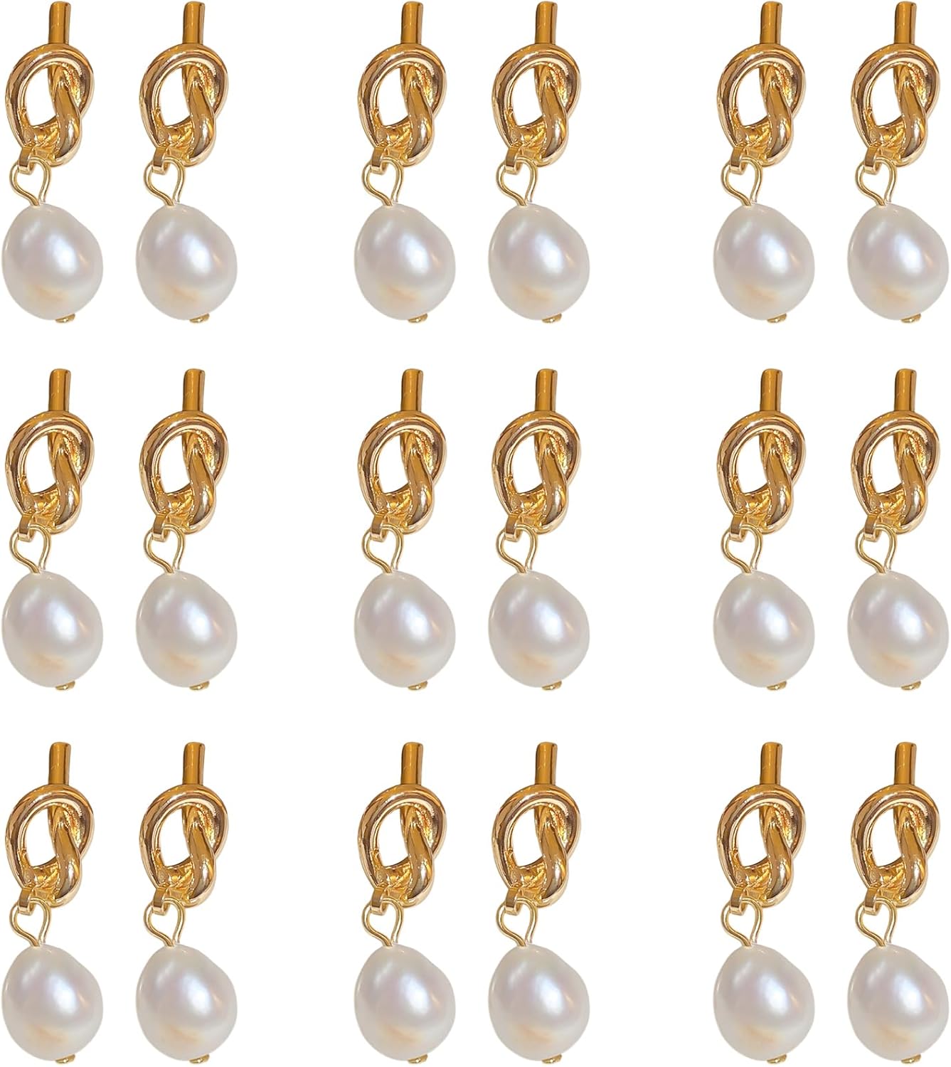 - 9Pcs Elegant Pearl Knot Earrings:A set have 9Pcs,these bridesmaid earrings feature a delicate golden spiral hook design,adding a striking golden touch to the bridesmaids’ ensemble