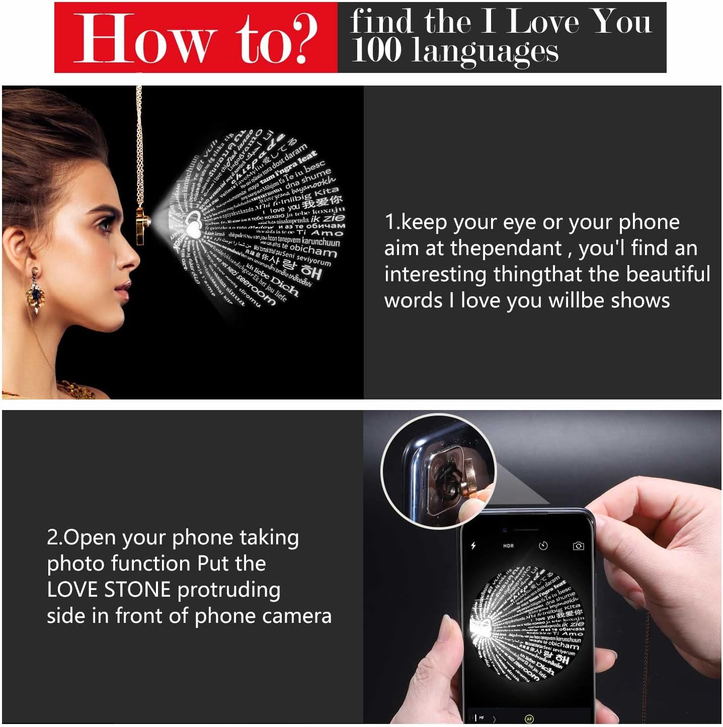 - I LOVE YOU 100 Ways Necklace: I LOVE YOU necklace in 100 Languages in Hidden inside Bottom of the jewelry box, “which means there are 100 love you ways”. The pendant and chain are made of brass with rose gold plating,which are hypoallergenic and have oxidation resistance.The love necklace designed with an 18-inch chain, 2-inch extender, and a adjustable spring ring clasp.They don’t contain lead, nickel, or allergens