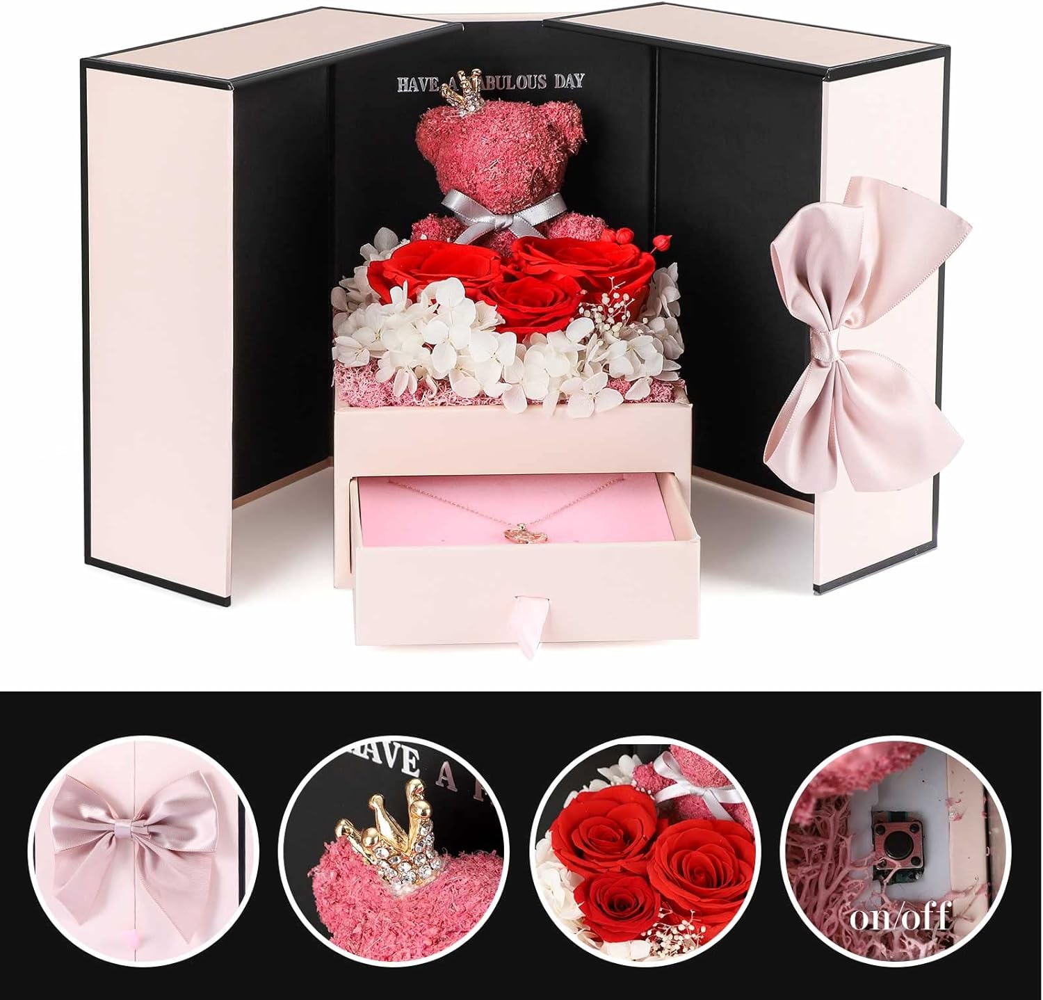 - Gift Package & After-Sale Service: Preserved roses and love necklace are well wrapped in the gift box, so that you could give directly without spend time on package. As an exquisite luxury gift, it can also store other jewelry. The necklace can be worn, and the rose box can be placed indoors as an ornament. If there is any problem with our product, don’t hesitate to contact us as soon as possible