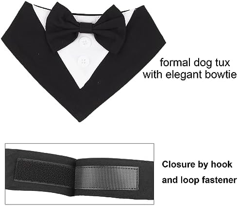 • Formal Dog Tuxedo: Designed with black and white tux style bandana with elegant bowtie, this dog tuxedo bandana is not only design for wedding, but also for birthday, valentine’s day, chritsmas party, etc. Wearing this formal dog bandna, let your dog looks like a gentleman in these important occations.