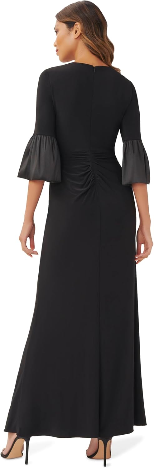 Timeless and glamorous, our floor-sweeping gown is crafted of a stretch jersey knit for a luxuriously soft look and feel. We love the figure-flatting twisted front and modern elbow sleeves with dramatic bell cuffs made of taffeta. All the details:..