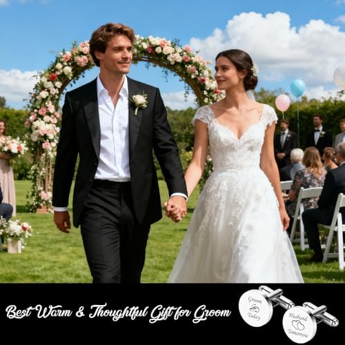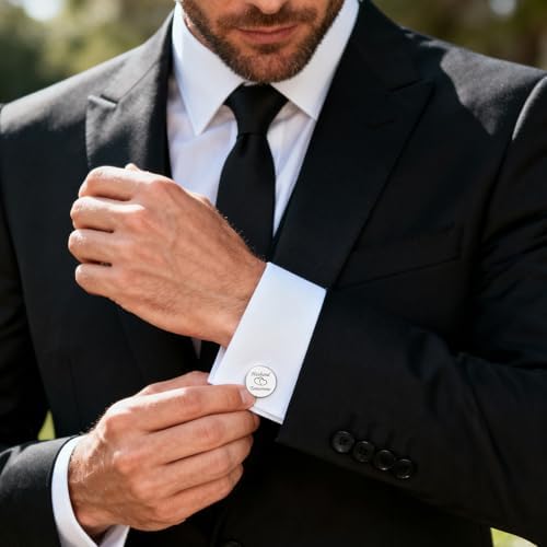 - Elegant & Comfortable for His Special Day: Lightweight and perfectly sized, these cufflinks add a refined touch to his wedding attire. Designed for all-day comfort, they ensure he looks and feels confident from the ceremony to the celebration. groom to be gifts, gifts to groom from bride, wedding gift for husband, gift for husband on wedding day, husband gifts from wife.
