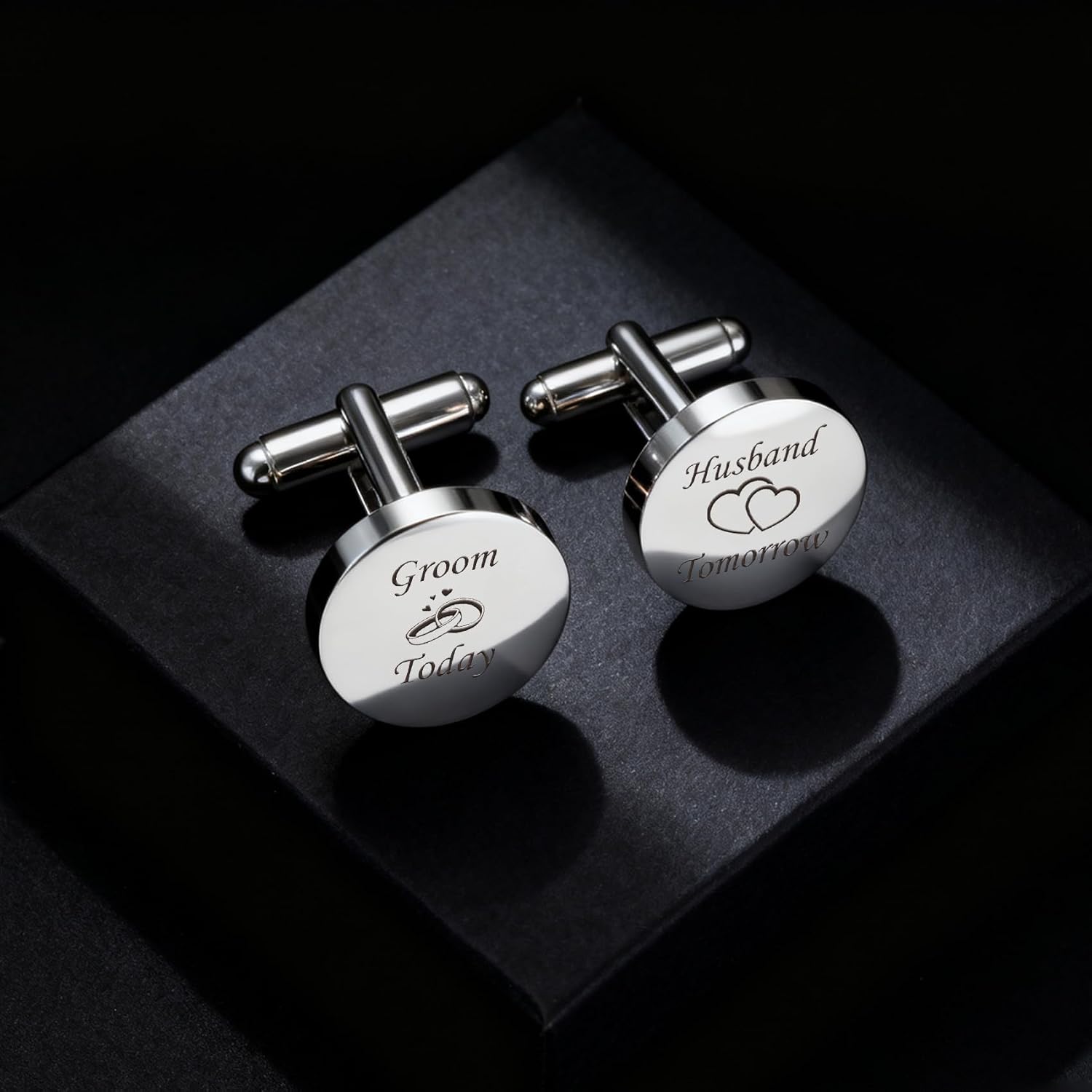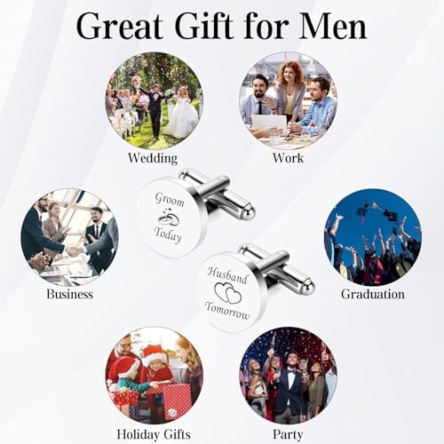 - Wedding Gifts for Groom: One cufflink is etched with “Groom Today,” the other with “Husband Tomorrow.” Together, they beautifully honor the journey from his wedding day to a lifetime of love and partnership ahead. grooms mens gifts, groom gifts from bride, gift to groom from bride, wedding gifts for groom.