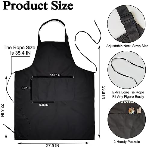 - Size: With adjustable neck strap and tie straps, you can freely adjust the length of the bib apron shoulder straps, which can be easily adjusted to a suitable size.