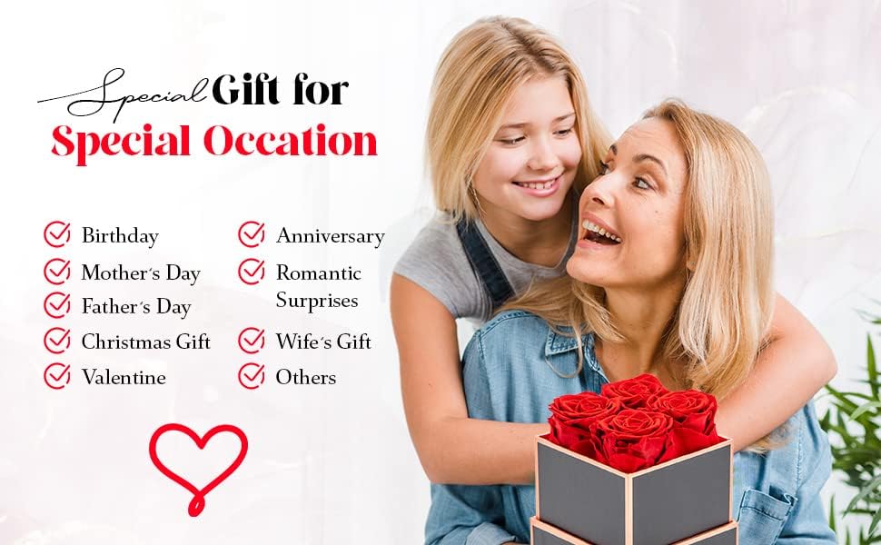 • 🌹 Surprise Your Loved Ones: From Mom to Wife, Girlfriend, Daughter, and Grandma, our preserved roses are the perfect surprise for Valentine’s Day, Christmas, Thanksgiving, New Year’s Day, weddings, birthdays, or any special occasion. Plus, enhance your home décor with these stunning everlasting roses.