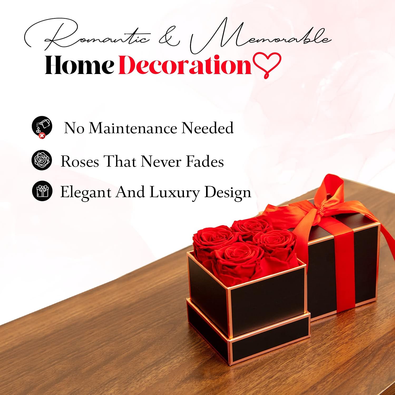 • 🌹 Indulge in Luxury: Our Preserved Rose Boxes arrive in stunning gift boxes, setting us apart from the rest. Elevate your gifting experience with our thoughtfully designed presentation. Each box is adorned with a gift ribbon, adding a touch of elegance to your special gift.