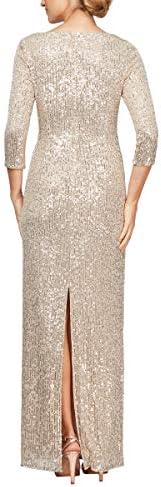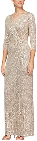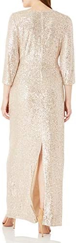 Elevate your formal event attire with the Alex Evenings Women’s Long 3/4 Sleeve Formal Event Dress. This stunning column dress features a luxurious all-over soft and stretchy sequin fabrication that ensures both comfort and glamour. The elegant design includes a flattering surplice neckline, 3/4 sleeves, and a cinched tie waist with a knot detail that accentuates your curves. Available in both petite and regular sizes, this versatile dress is perfect for weddings, galas, or any special occasion. The long silhouette and shimmering sequins create a timeless look that’s sure to turn heads. Whether you’re attending a black-tie event or a sophisticated dinner party, this Alex Evenings dress will make you feel confident and beautiful all night long.