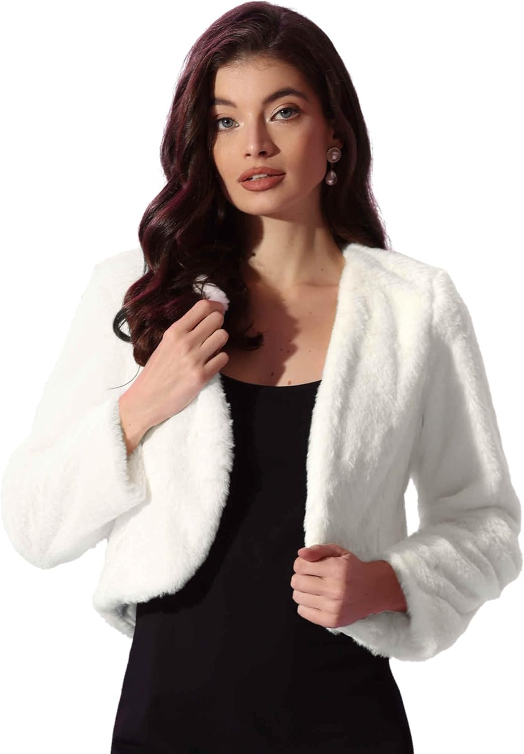 - Open front design makes it easy to layer over dresses, gowns, or evening wear for a luxurious touch