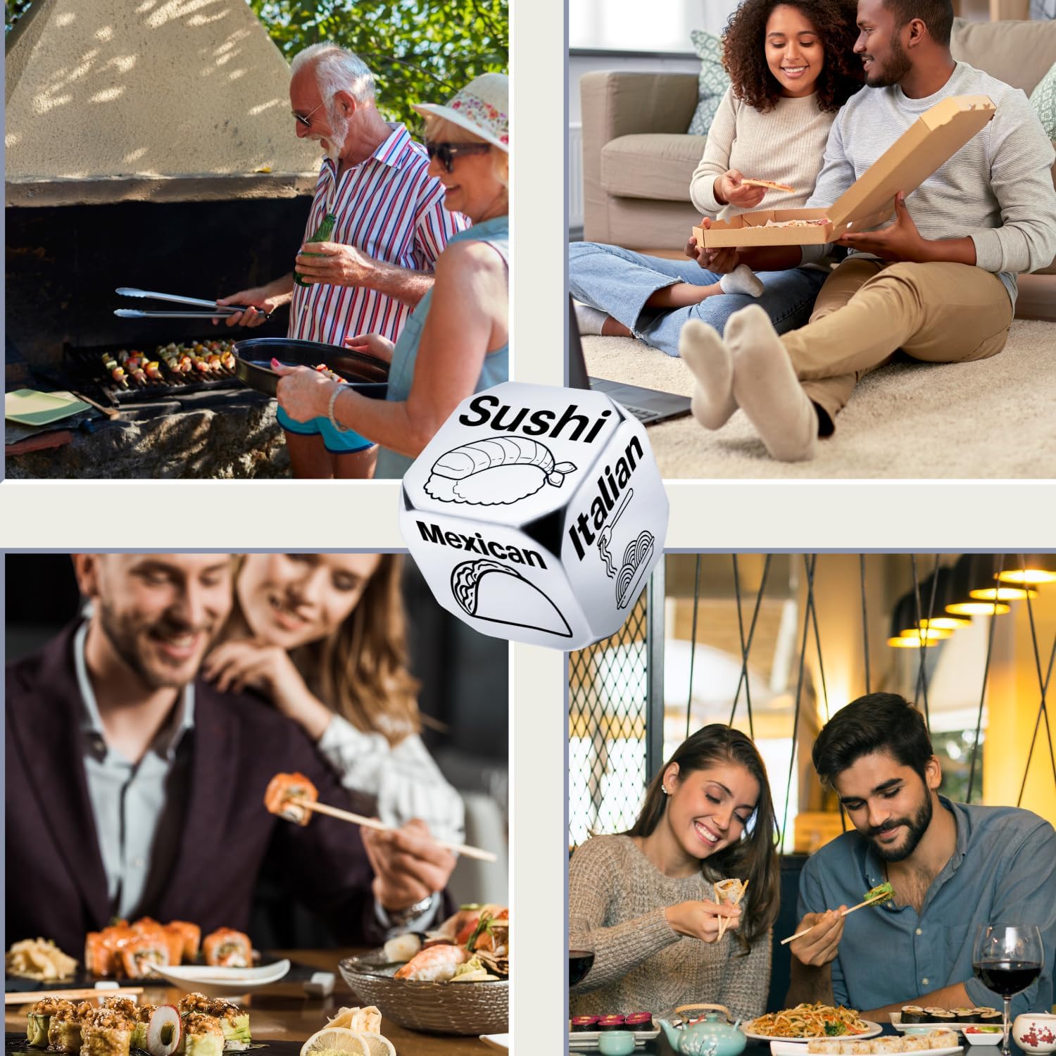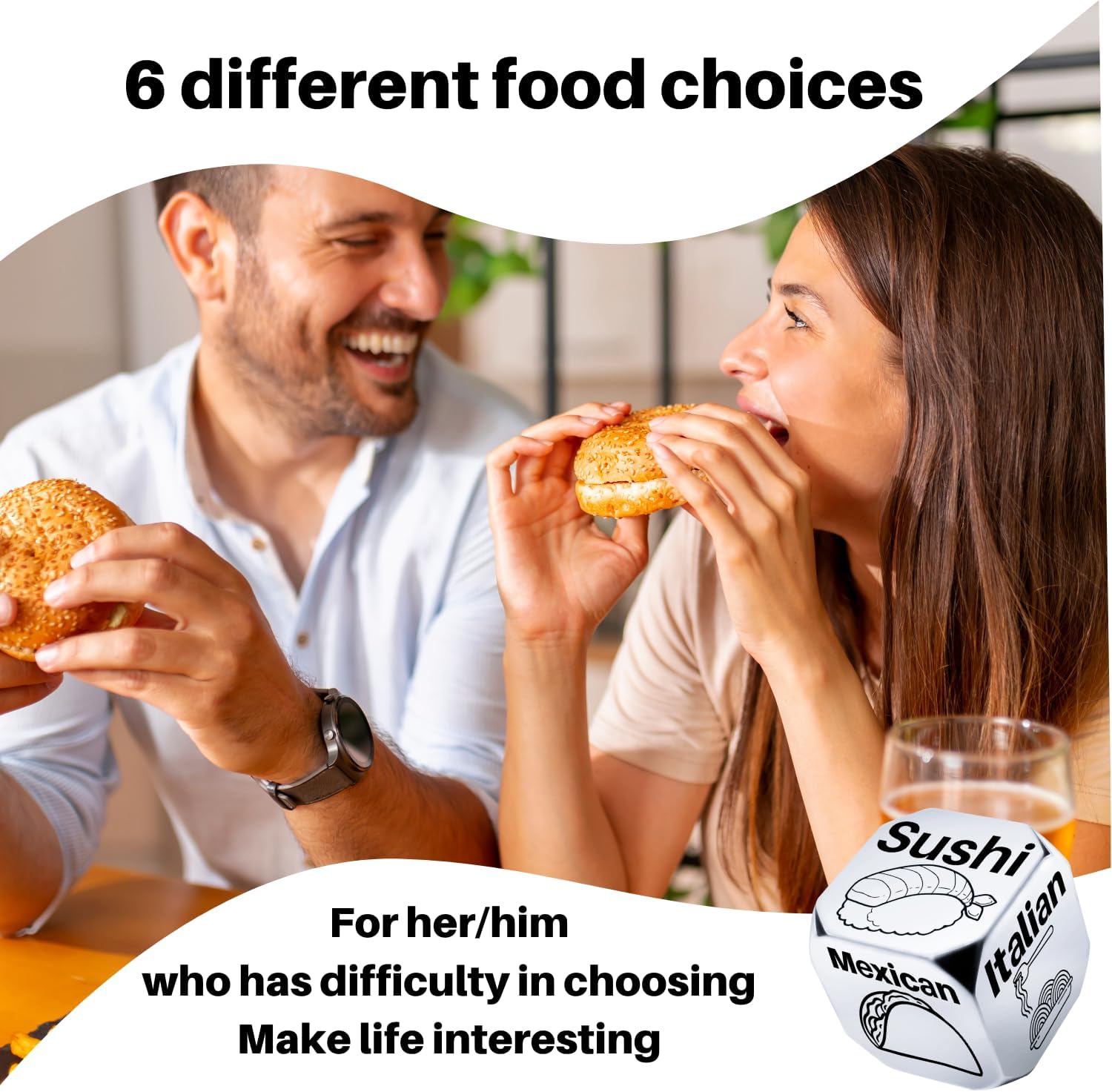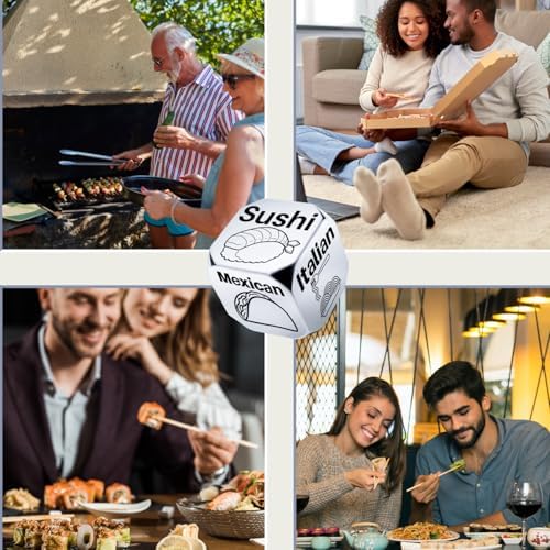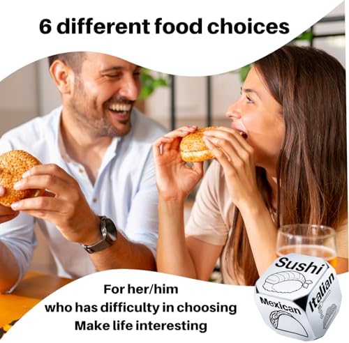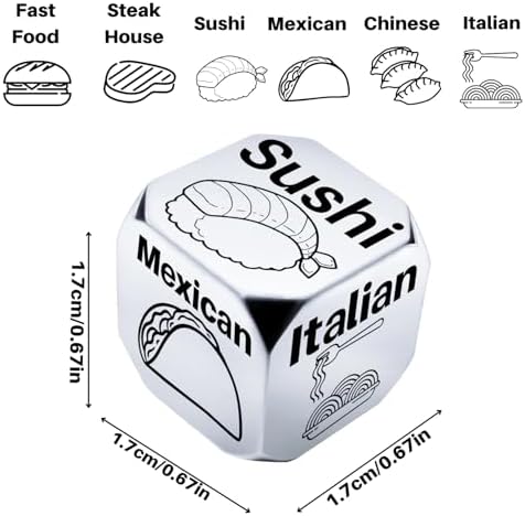 • Date Night Gift Ideas: Our decision dice will help you make decisions easier and make your day funny.Date night or surprise your loved one with this perfect gift idea. Say goodbye to the age-old question, “What’s for dinner?” by simply rolling the and letting choose your culinary adventure. Whether you’re searching for funny gifts for him her, or anniversary gifts for men or women, our food decision dice is the perfect choice.