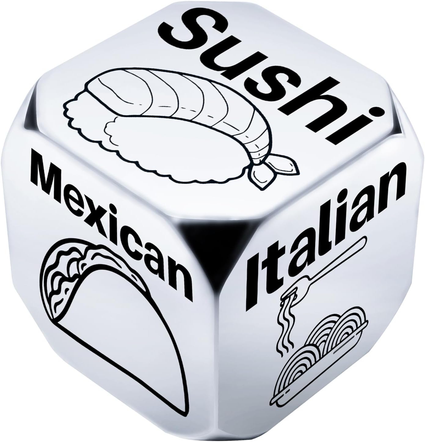 • High Quality: Our date night dice are made of high-quality alloy, which is lightweight, durable, portable, and engraved six different food choices,engraved lettering is clear and easy to read, and less prone to wear and cracking.