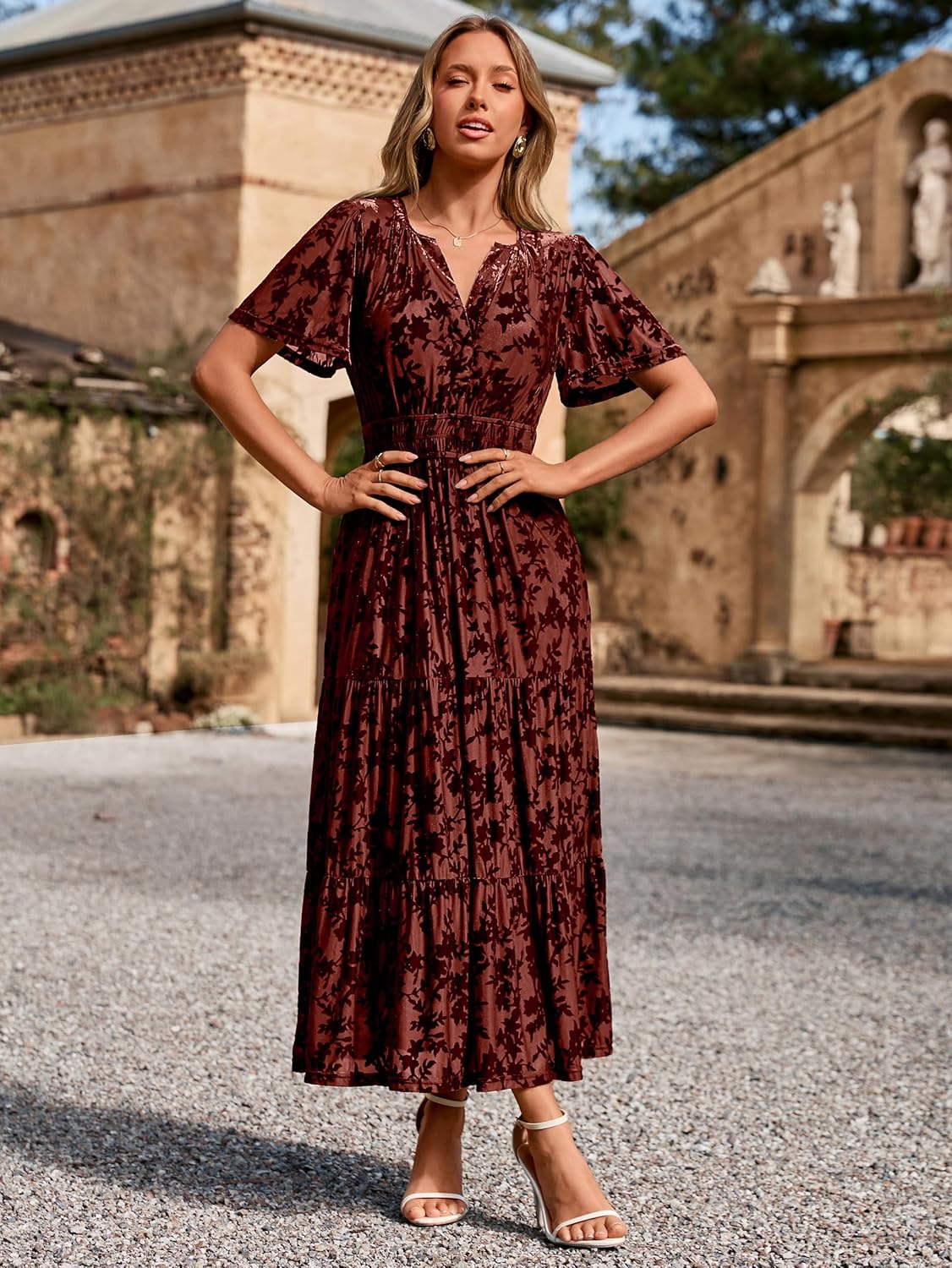 The video showcases the product in use.The video guides you through product setup.The video compares multiple products.The video shows the product being unpacked. velvet dress for women Merchant Video