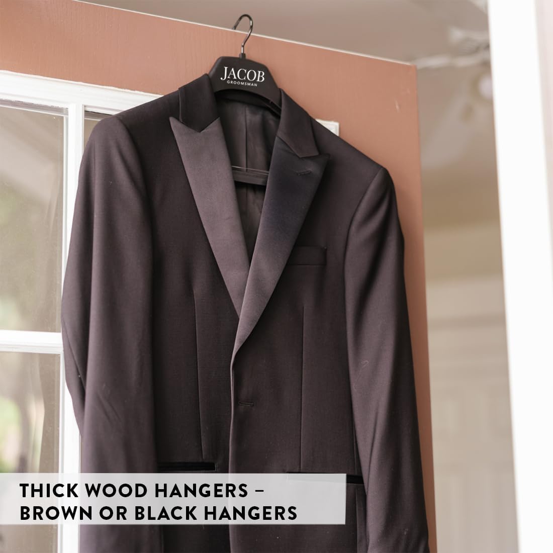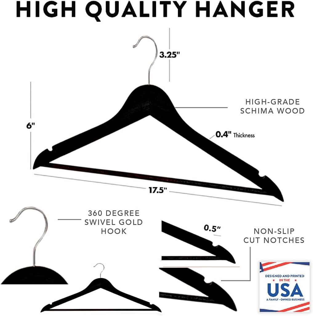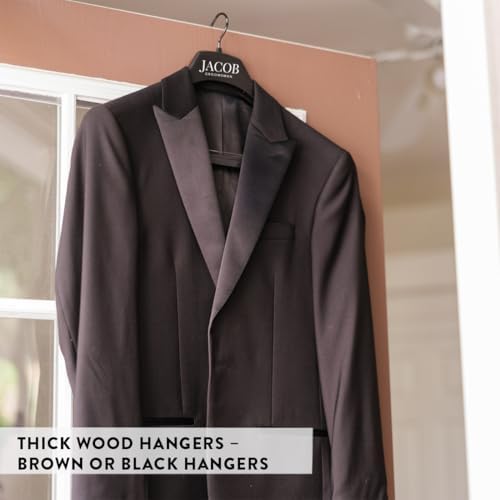 • FITS ALL WEDDING STYLES AND ATTIRE – Whether you need dark walnut brown or black wooden hangers, bridal hangers for wedding party, or groomsmen and groom hangers for wedding set, we offer the versatility to fit tuxedos, jackets, and dress shirts.