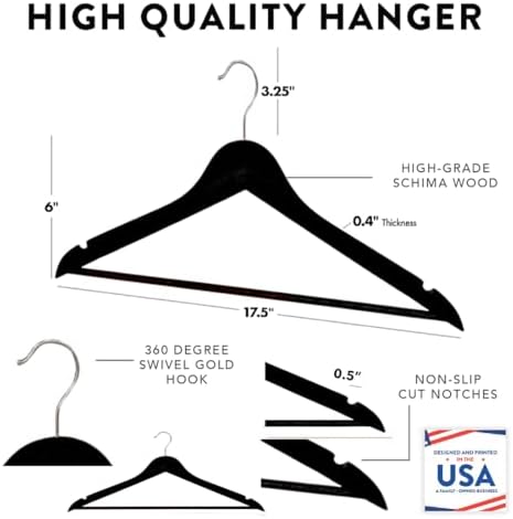 • PREMIUM WOODEN CONSTRUCTION FOR DURABILITY – Crafted from 0.3″ thick, high-quality birch wood, our slim wood clothes hangers provide lasting use. Available in dark brown and black wood hangers, dark wood hangers, to match any wedding theme. Our wedding personalized groomsmen hanger features a 360° silver steel swivel hook that allows you to hang clothing from any angle and check out garments with ease.
