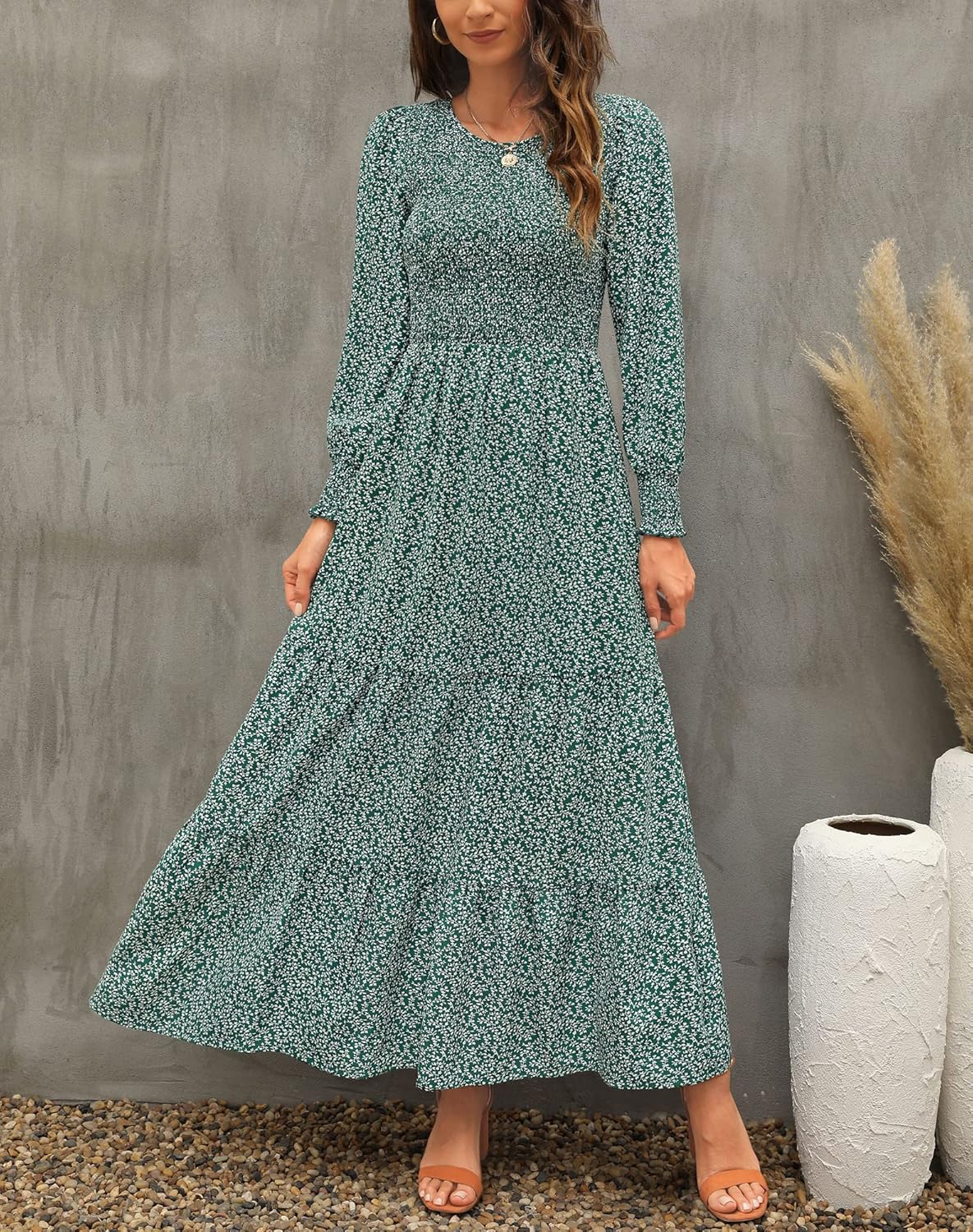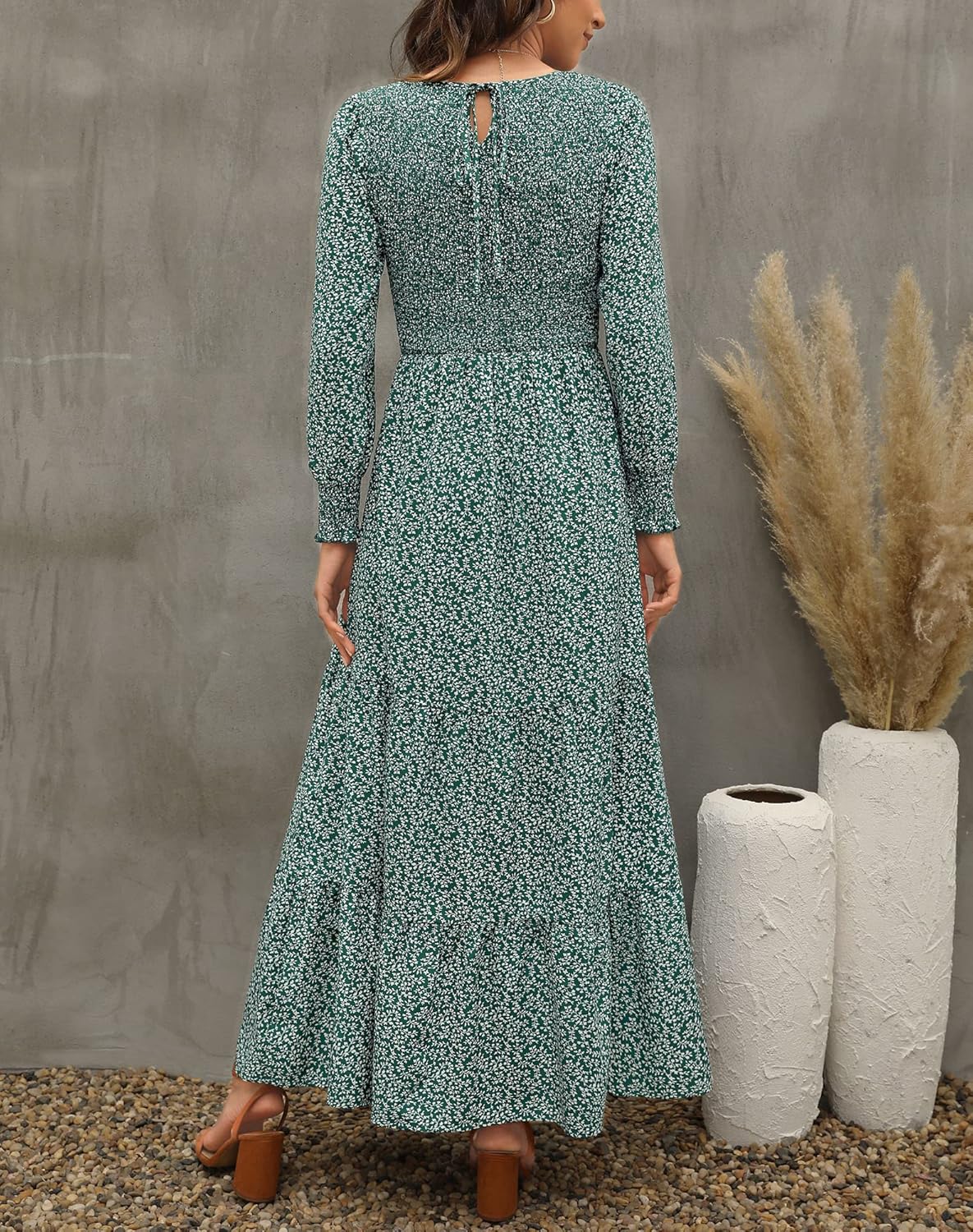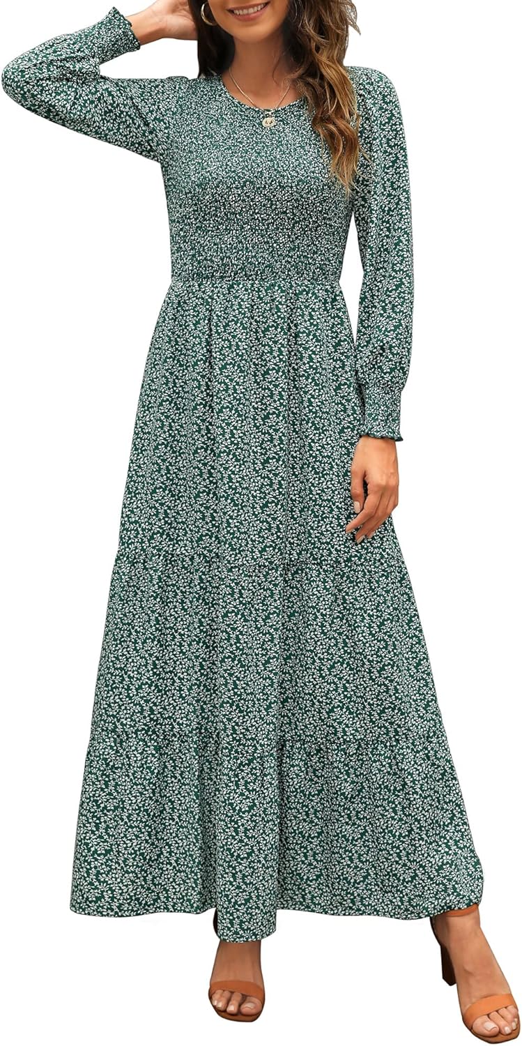 Annebouti Women’s 2025 Fall Long Sleeve Flowy Casual Smocked Boho Floral Maxi Dress