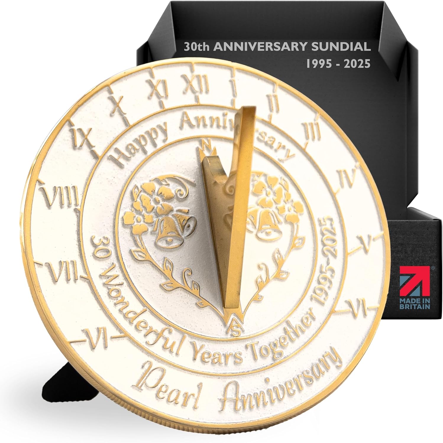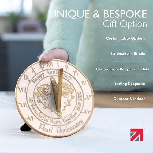 - HANDMADE IN THE UK – With high quality thick Brass, our craftsmen combine simplicity, elegance and durability into every single sundial. And for this 30th wedding anniversary version, they finished it in white. Some may say it’s a bold choice, we say a well-deserved choice. After all, 30 years is something to shout about.