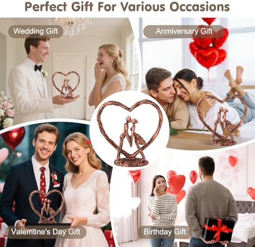 - PERFECT WEDDING ANNIVERSARY GIFT:This kissing couple statue is a unique anniversary gift for her, him, wife and husband. The heart backdrop sets off their gentle kiss, showing deep affection and an intimate bond. It’s more than a statue—it’s a sweet love keepsake, making each anniversary a celebration of your tender