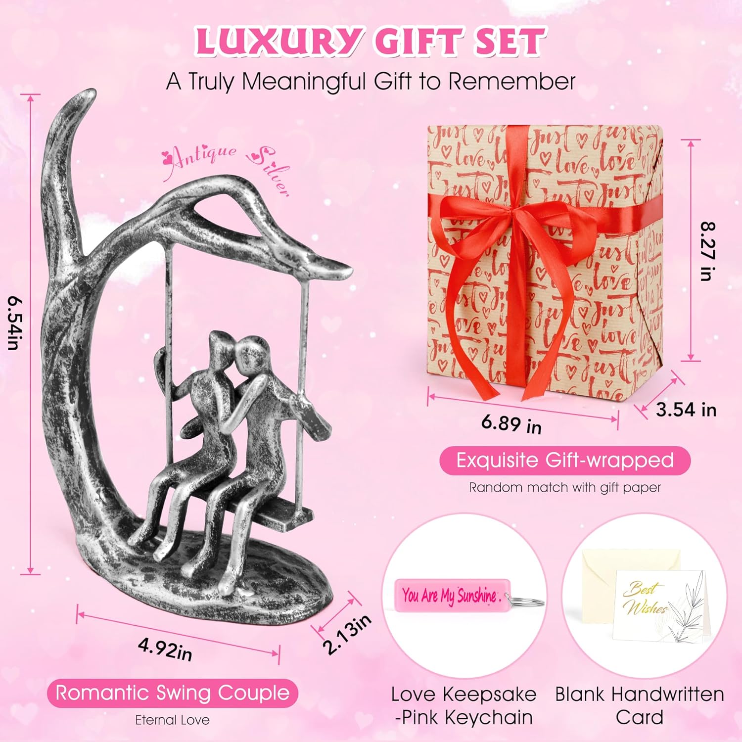 • Wedding Gifts Anniversary Gifts Birthday Gifts Valentines Day Gifts: Our exquisite gift set symbolizes eternal true love, appreciation and care. It uniquely includes an iron sculpture with silver finished, a pink love keepsake and a blank greeting card. Each product is wrapped in beautiful gift paper(random match)and tied with a cute bow to make the gift more ceremonial! Heart-warming wedding gifts for couples 2026, anniversary gift for couple, love gifts for wife birthday, romantic Valentines Day gifts for her wife him husband, valentines gifts for wife