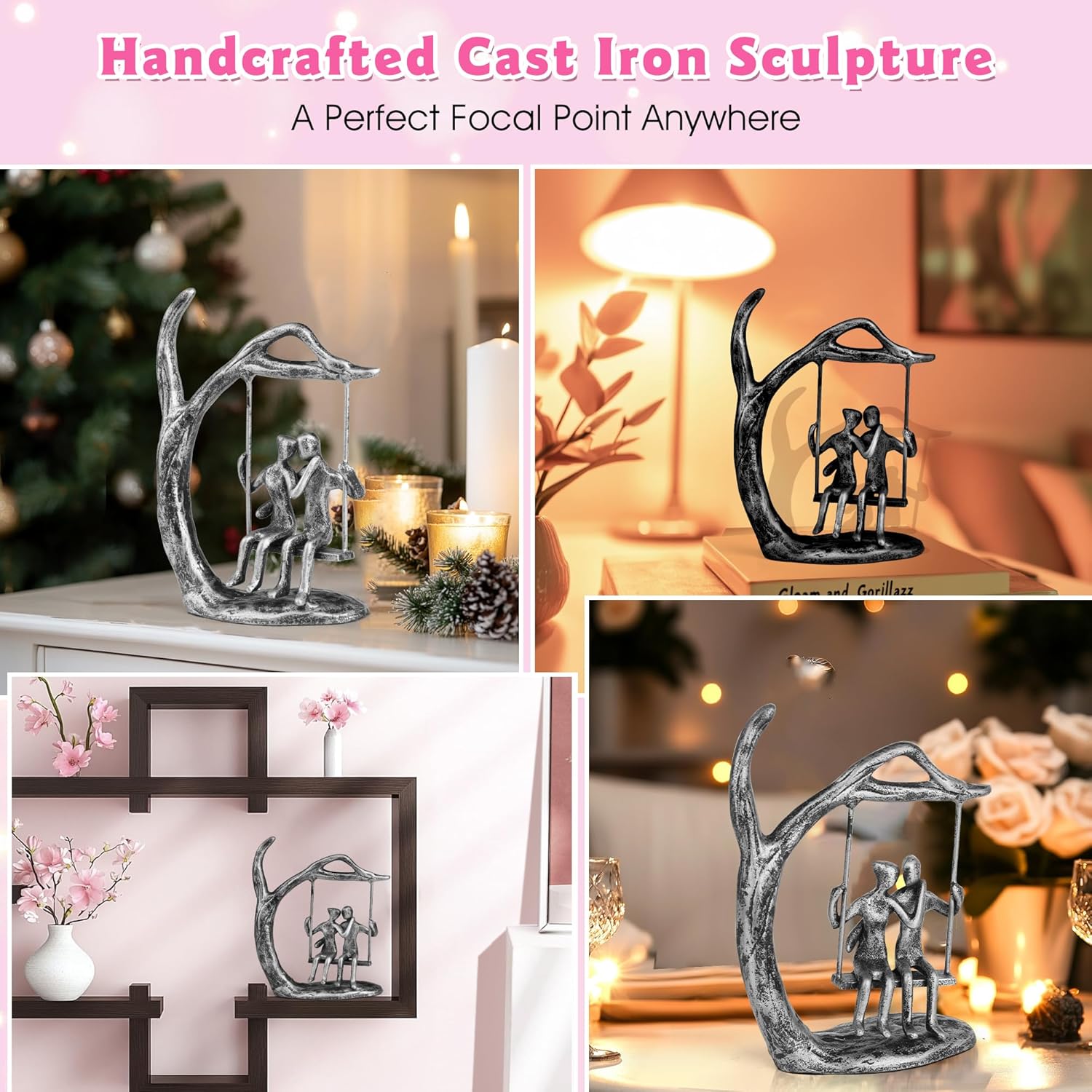 • Eternal Couple Iron Sculpture: Our inspiring swing couple figurine cast iron sculpture through unique appearance to represent an emotion or mark a memory, deeply express love, closeness, healing, courage, hope, all the meaningful relationship of a life well lived. Awesome iron gifts for her or him at any time. It will always bring a happy smile and a romantic feel. And the cute size of it is 4.92 x 2.13 x 6.54 inches, adding a touch of elegance to any space