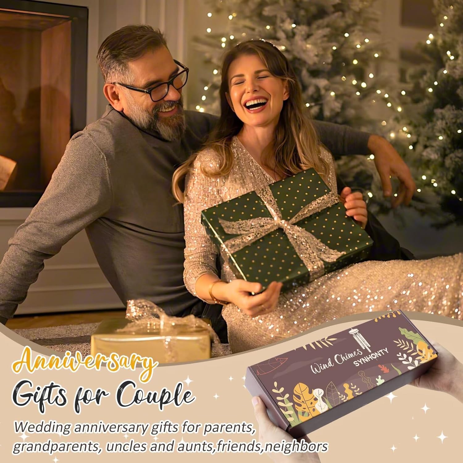 Anniversary Wind Chimes Gifts for Men Women, 25 Wind Chimes Romantic Gift for Couple, Parents, Wife, Husband, Friends, Happy Anniversary Decorations