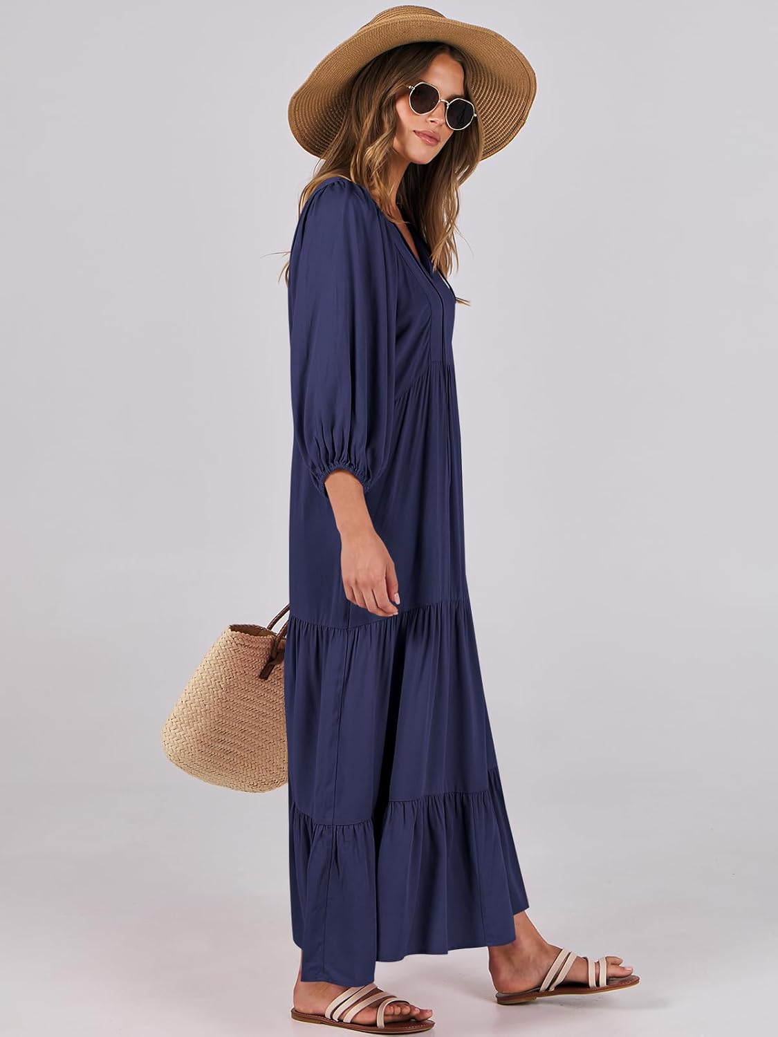 ANRABESS Womens 2025 Summer Boho Puff Sleeve Maxi Dresses  dresses for women trendy dresses for women trendy