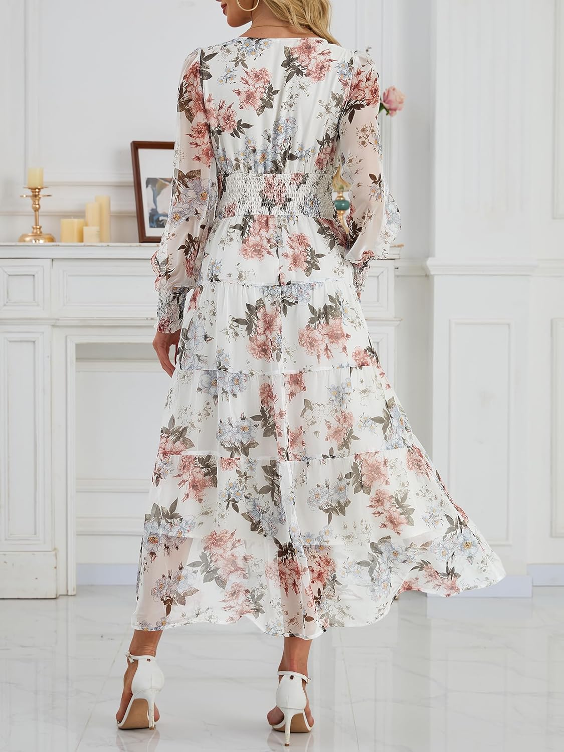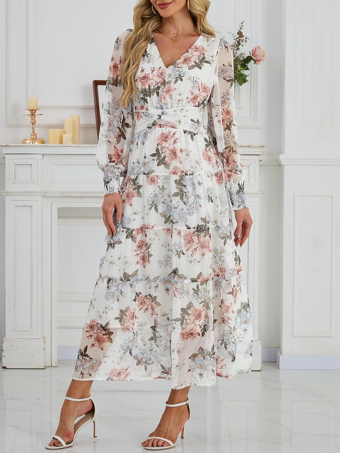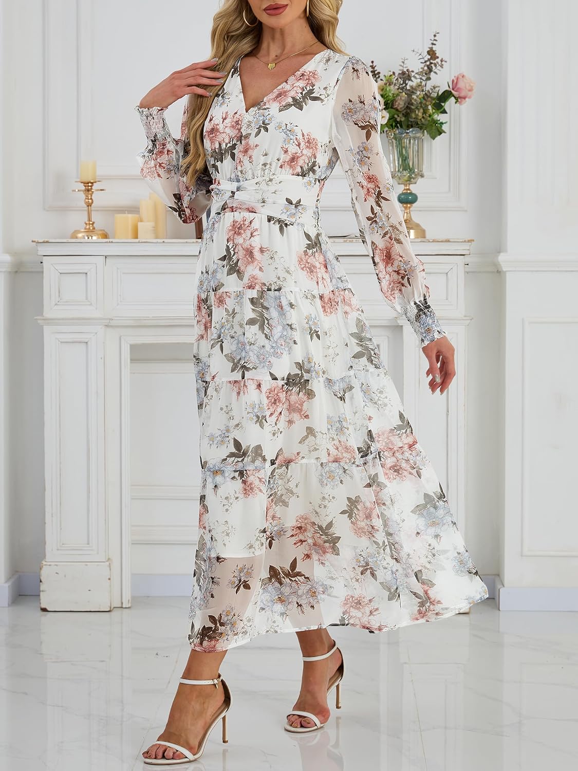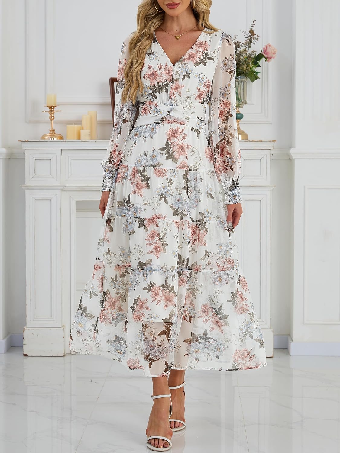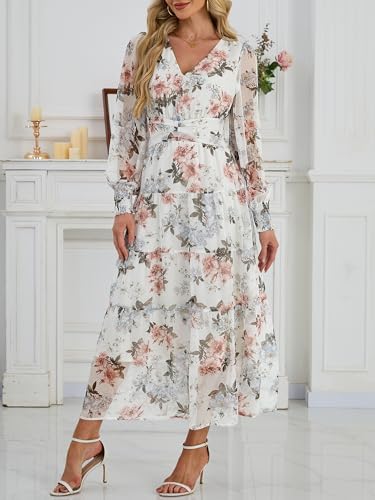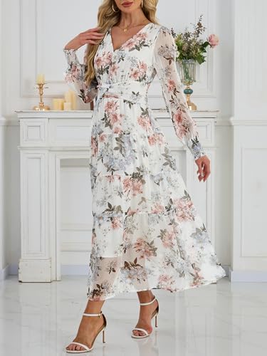 ANRABESS Womens Floral Long Sleeve Maxi Dress V Neck Chiffon Flowy Boho A-Line 2026 Spring Wedding Guest Party Wrap Dresses
