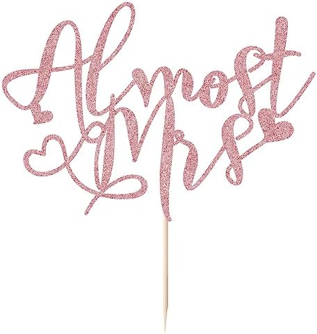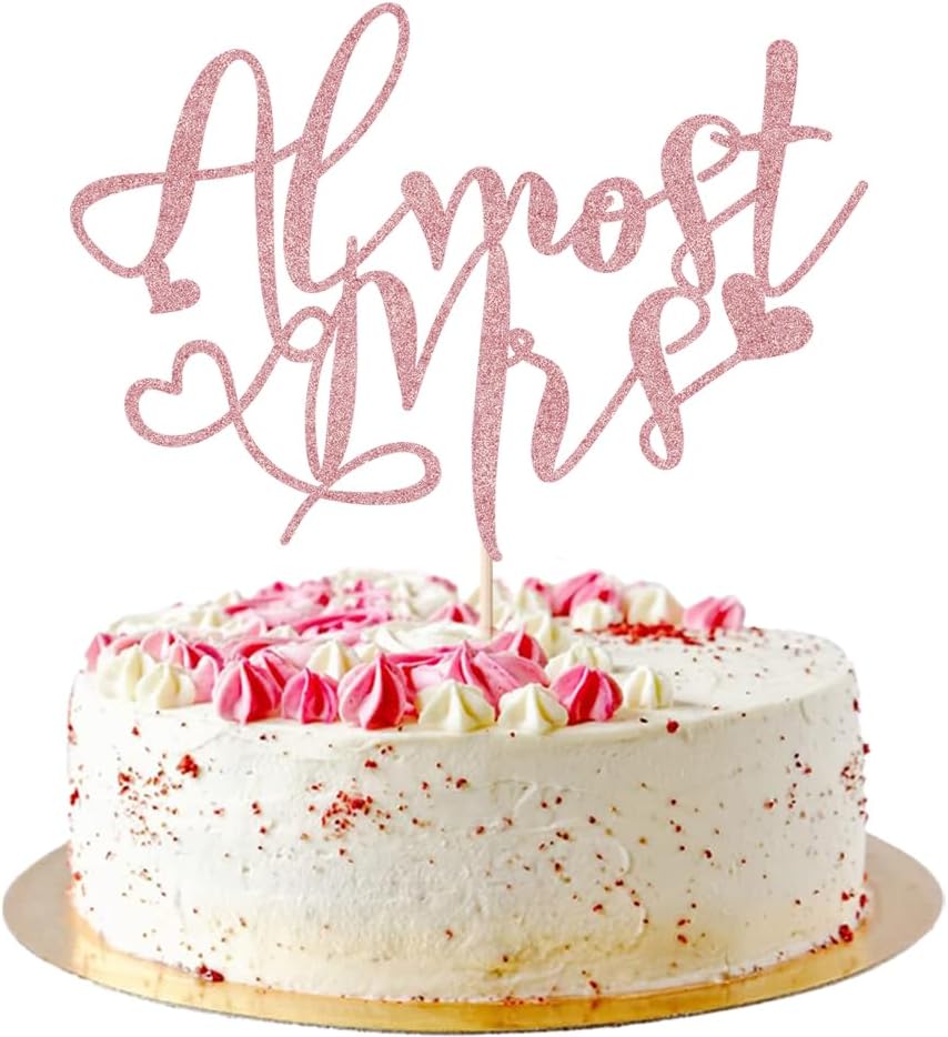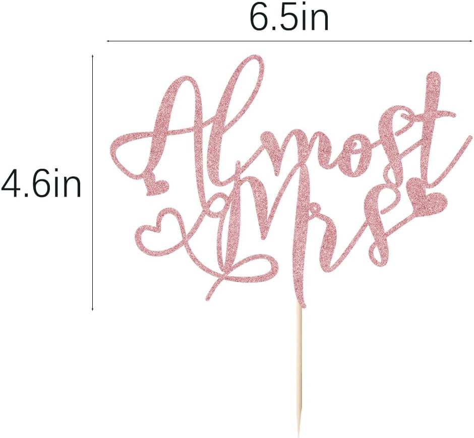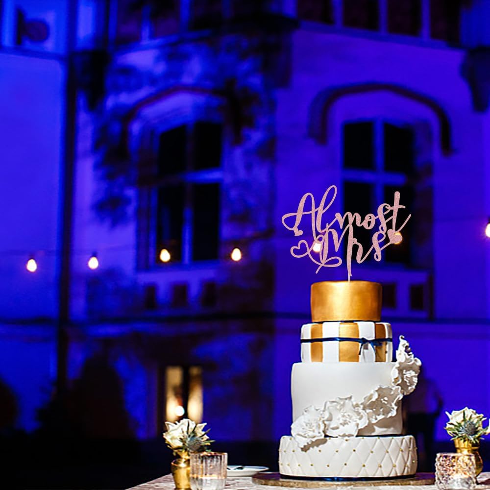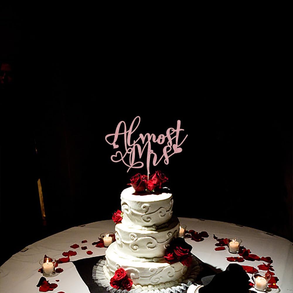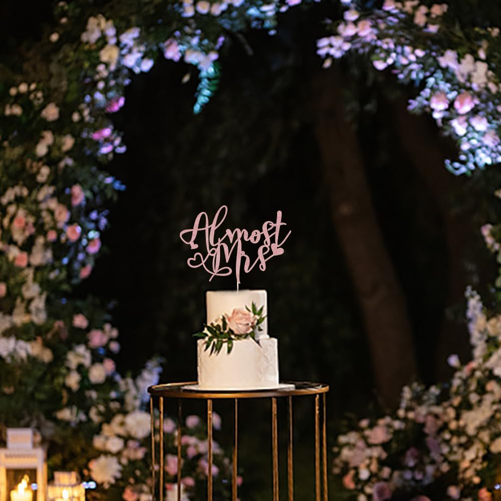 Almost Mrs Cake Topper , Bridal Shower Decorations, Engagement Cake Topper, Bachelorette Party Supplies, Photo Decoration Props – Glitter Cake Topper (Rose gold)