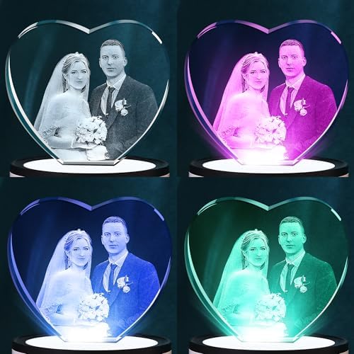 Artmosphere 3D Crystal Photo, Valentines Day Personalized Gifts for Women, Wife, Men, Her, Him, Great V-Day Custom Gift With Your Own Photo, Customized Glass 3D Laser Etched Picture Wedding – Heart