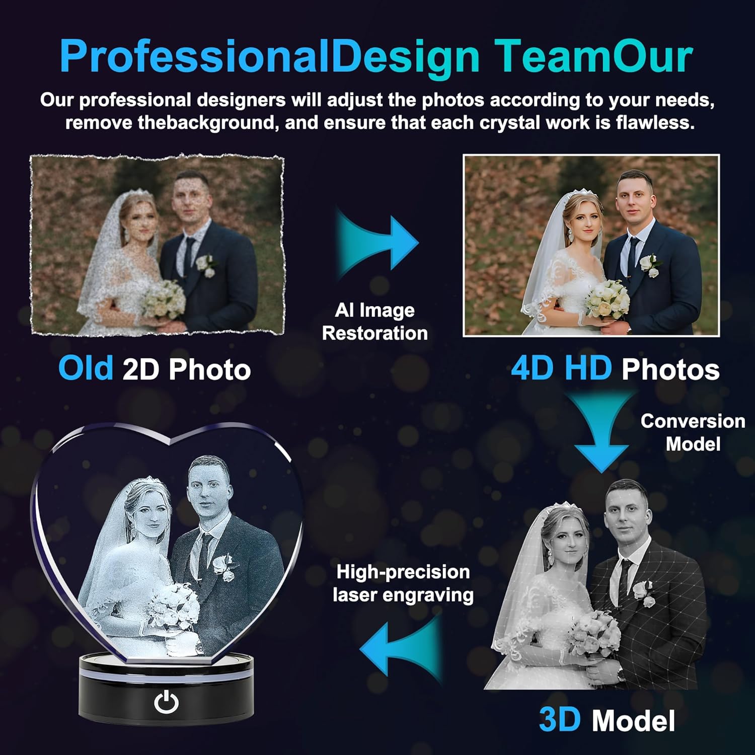 • Dedicated Customer Support – Our team provides assistance throughout the process, from photo selection to order completion, ensuring your 3D crystal photo meets your expectations. We’re here to help create the perfect gift for your friends, family, or colleagues.