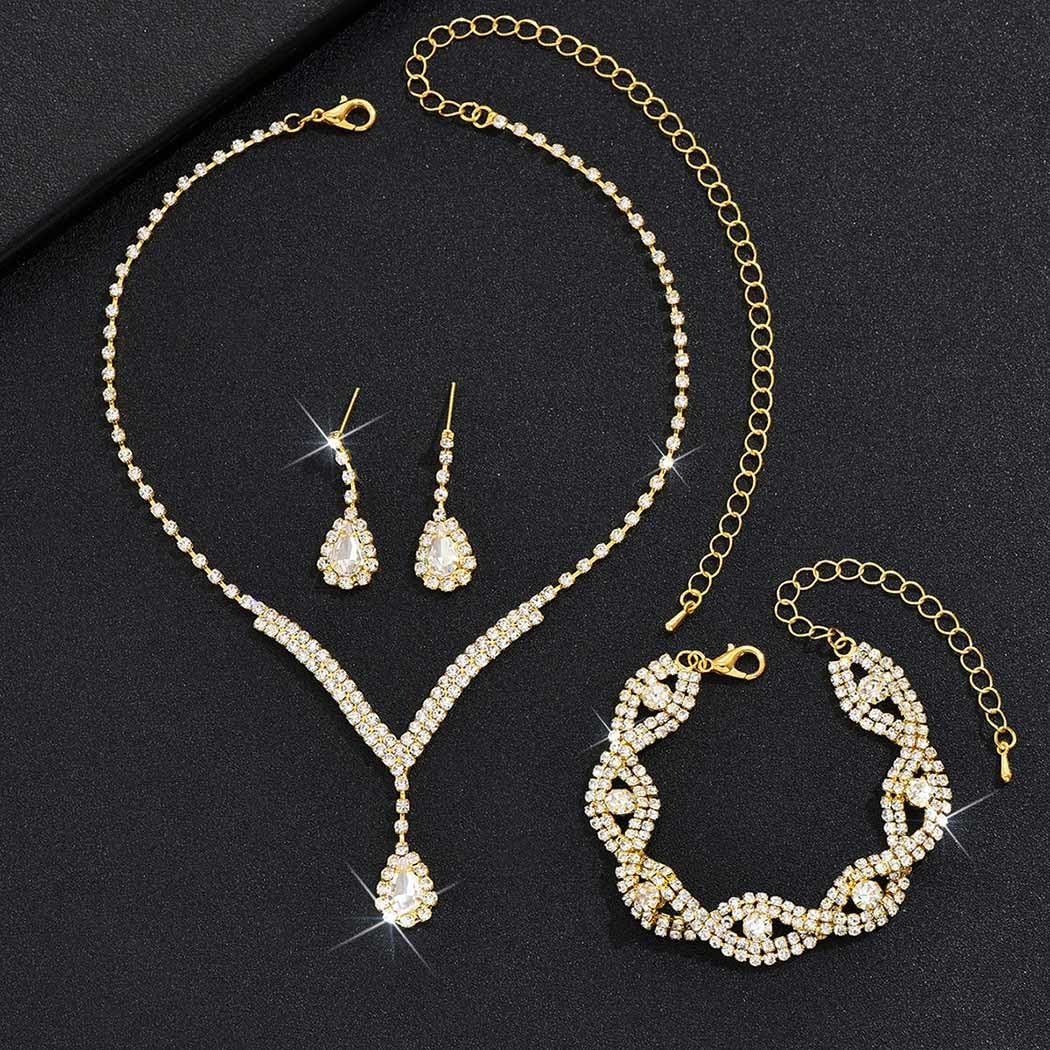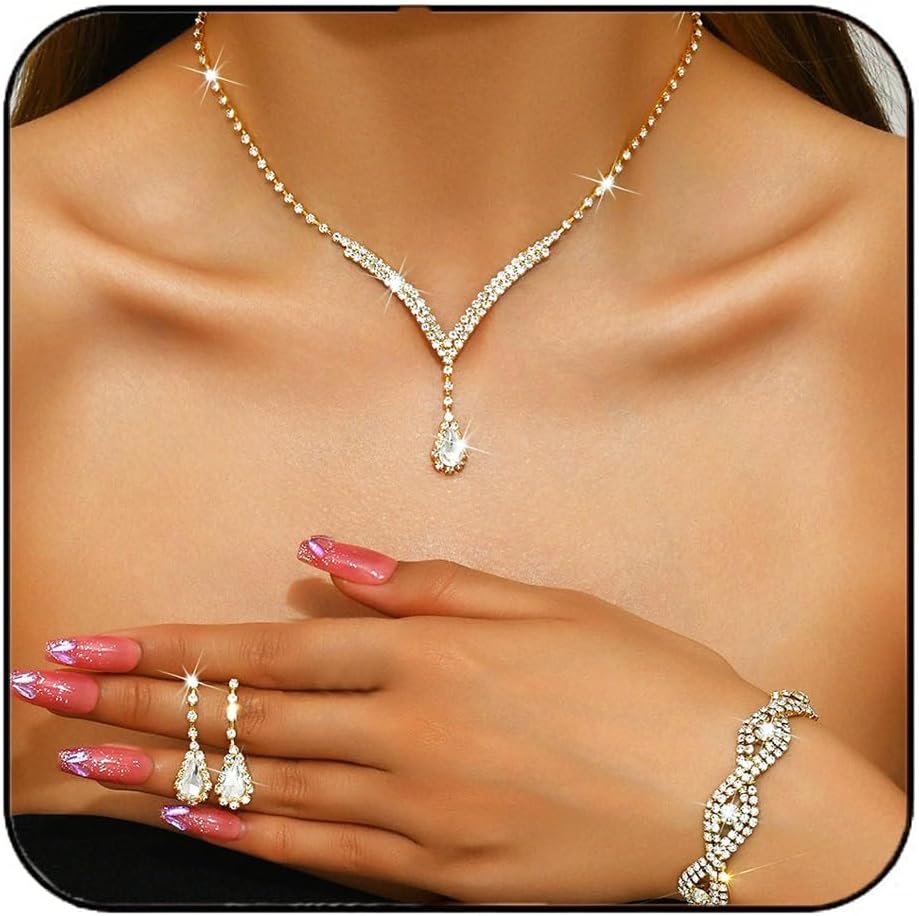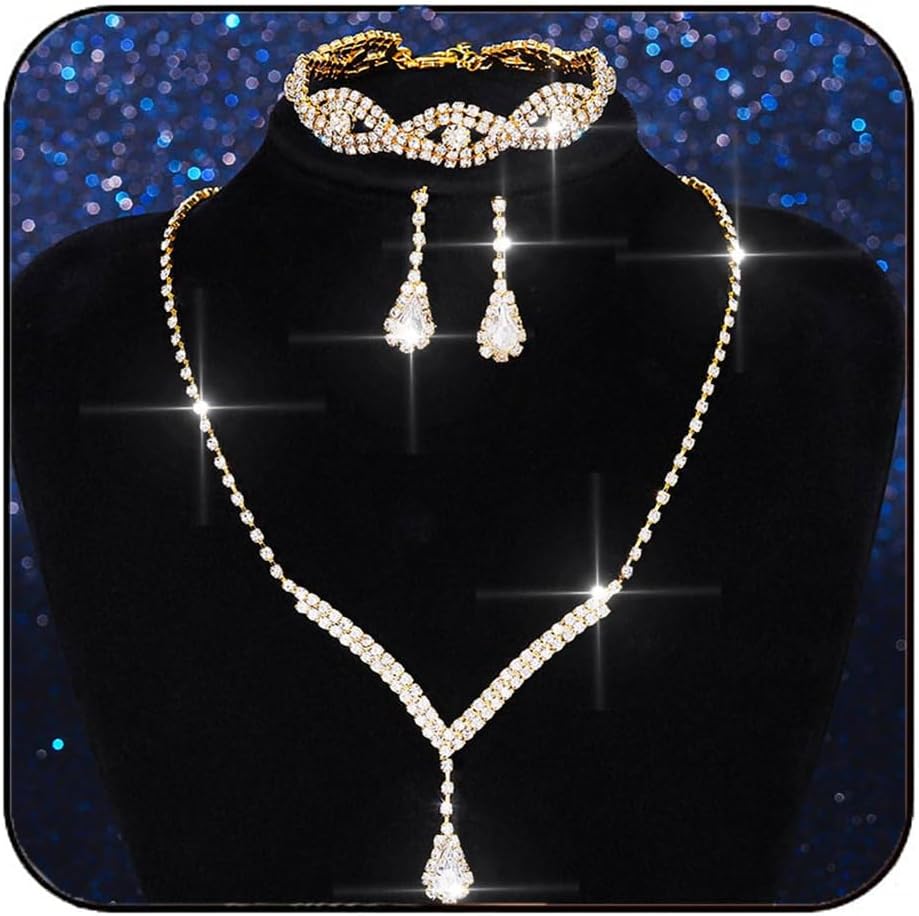 Aukmla Bridal Wedding Jewelry Set Rhinestones Wedding Necklaces Earrings Bracelet Sets Ctystal Prom Jewelry for Women and Brides