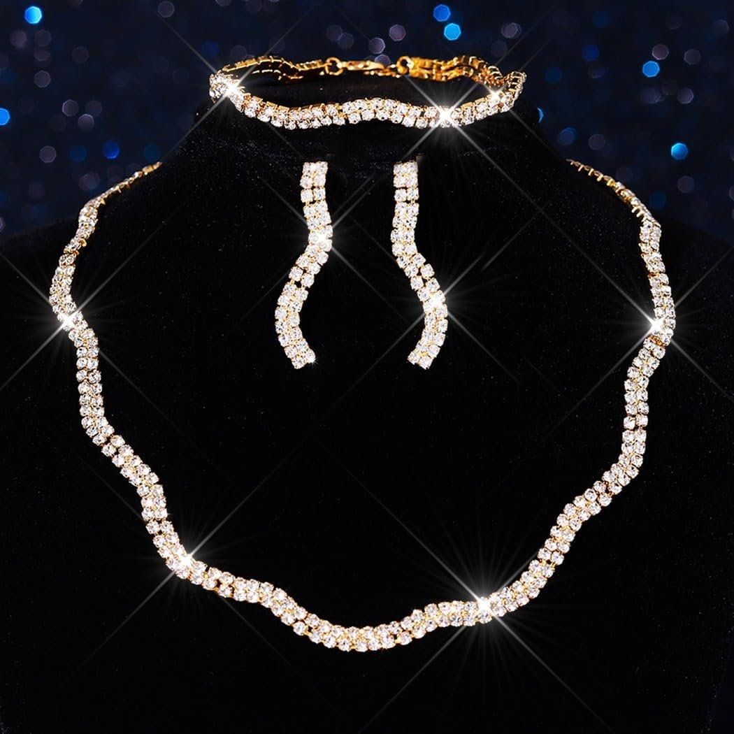 - Prom necklace for women package include: 1 necklace, 2 earring and 1 bracelet.