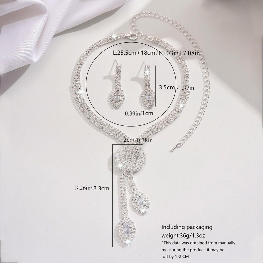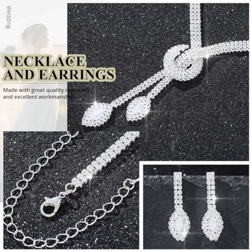 Aukmla Silver Bridal Wedding Jewelry Set Sparkly Rhinestones Weddding Necklace Earrings Set Prom Jewerly for Women