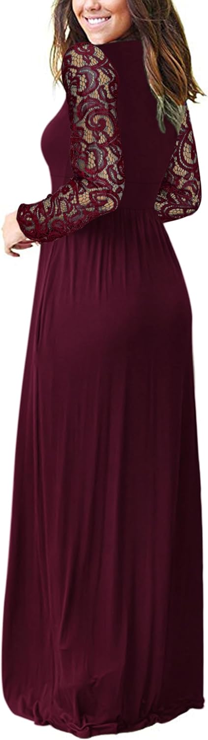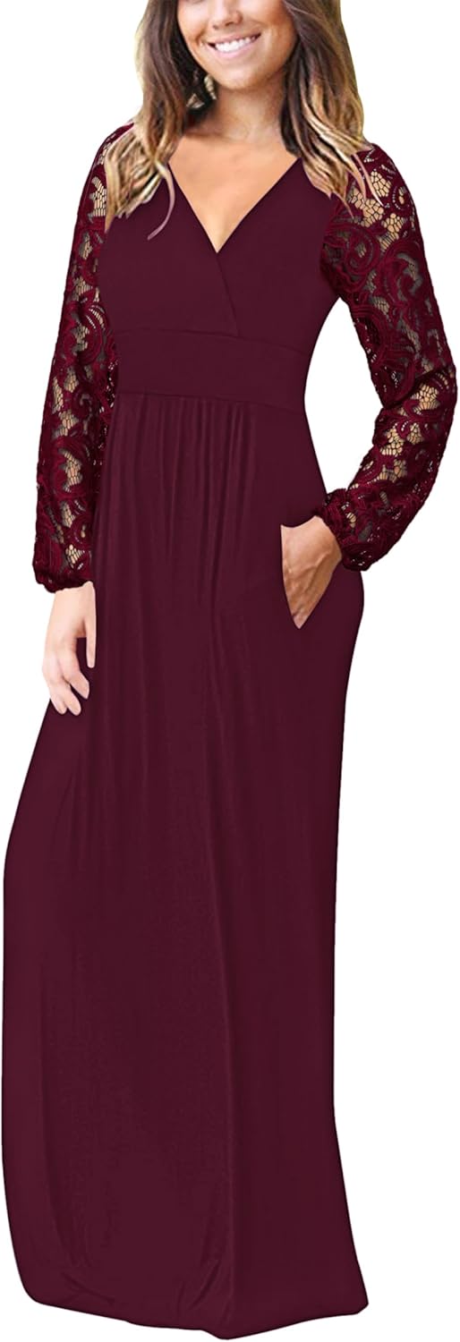 - Unique Design: This womens fall dresses feature a classic lace long sleeve, Empire Waist, Two Pockets,Casual Elegant, Floor length Dress. The loose design below the waist can cover the fat on the waist and abdomen, help to slim the figure.