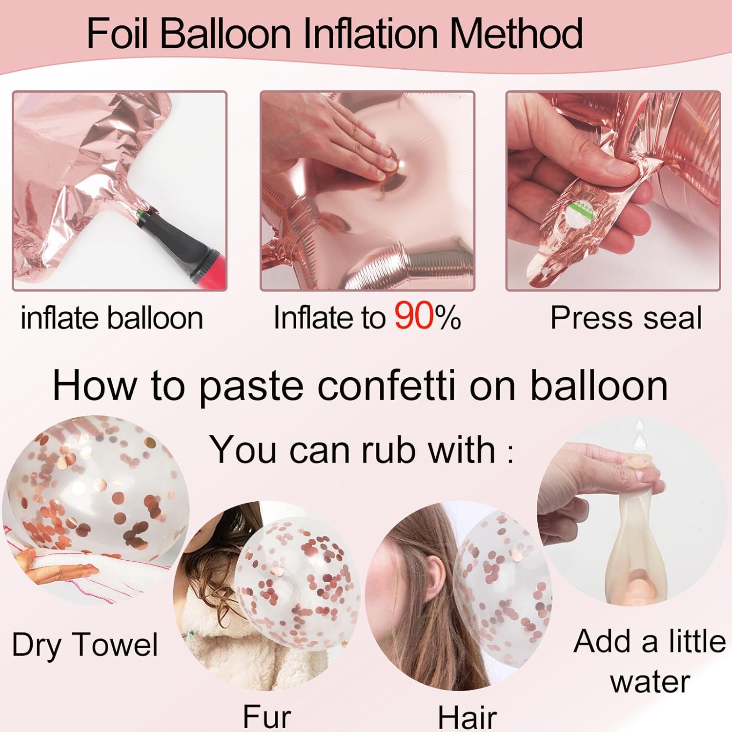 - Note: Usually, we inflate the foil balloon to 90%, as inflating it too full can easily cause the balloon to burst. Balloons should be protected from sunlight, overheating, sharp objects, and excessive friction