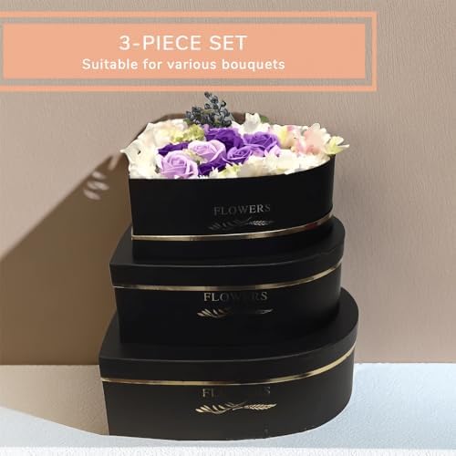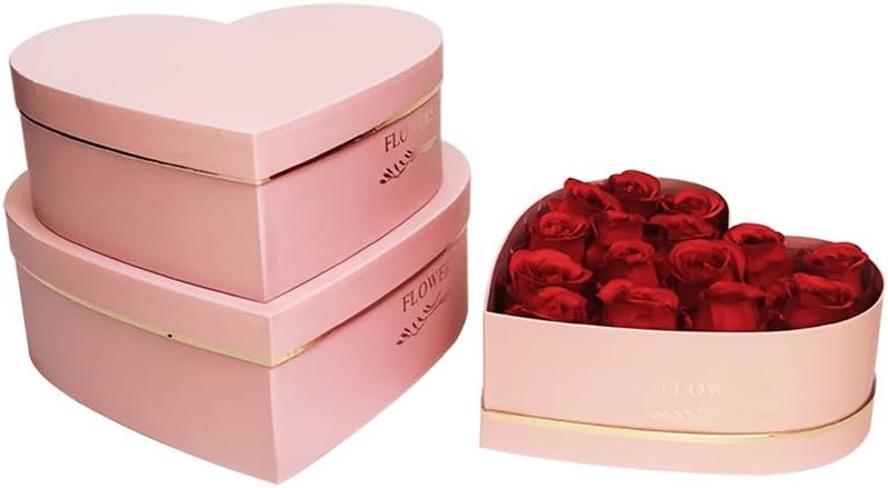 BBJ WRAPS Heart Shaped Flower Boxes with Gilding Design Floral Gift Box for Luxury Flower Arrangements Florist Supplies on Valentines, Mothers Day, Birthday, Party, 3 Sizes/Set (Pink)