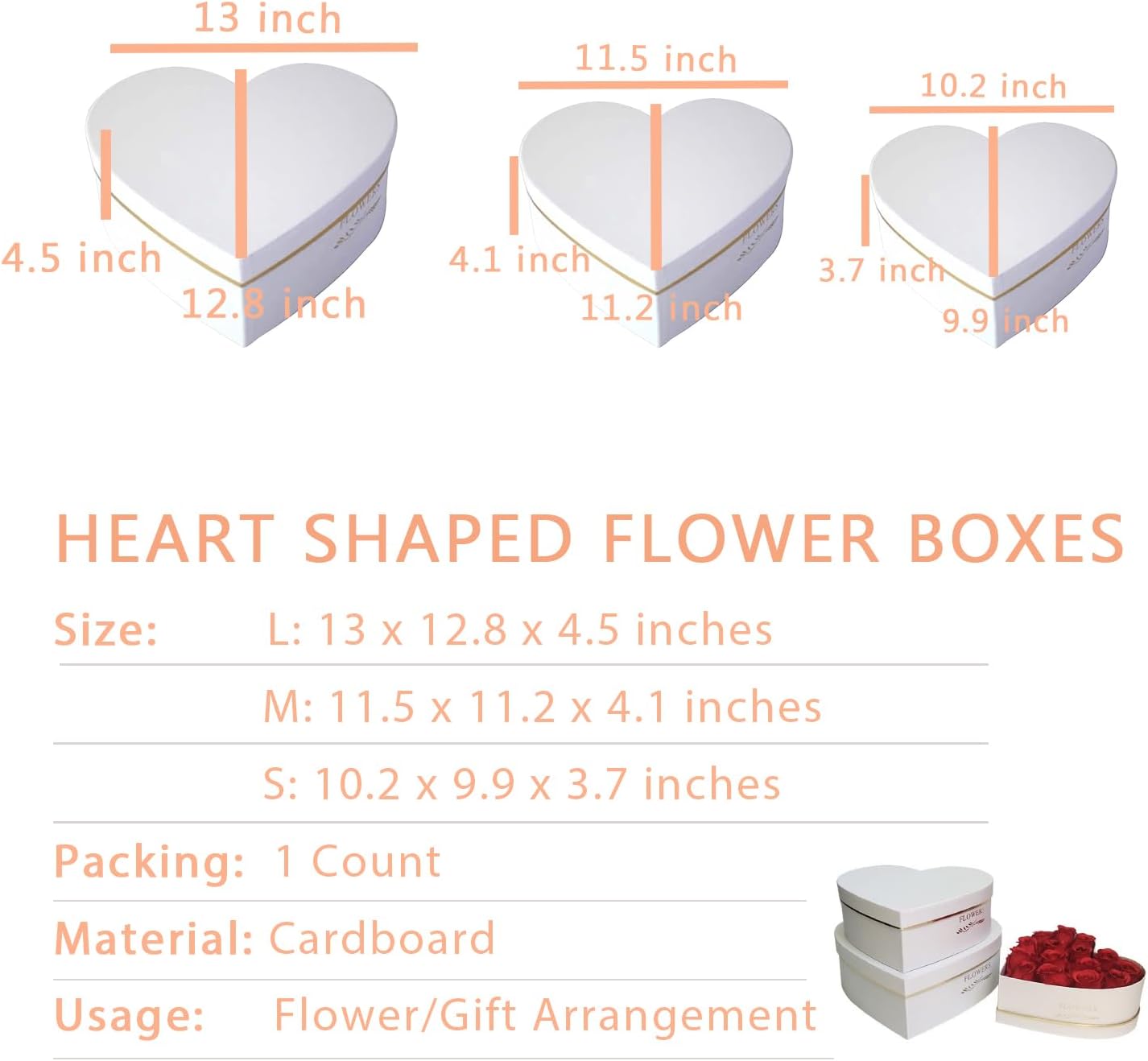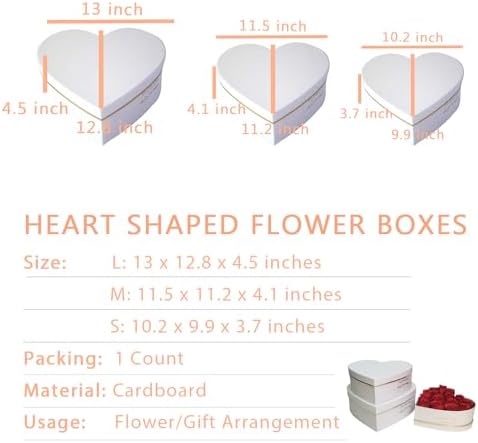 • For All Occasions: These versatile heart shape flower boxes are perfect for Valentine’s Day, Mother’s Day, birthdays, parties and other special occasions. Use them to make any gift and flowers more special and memorable.