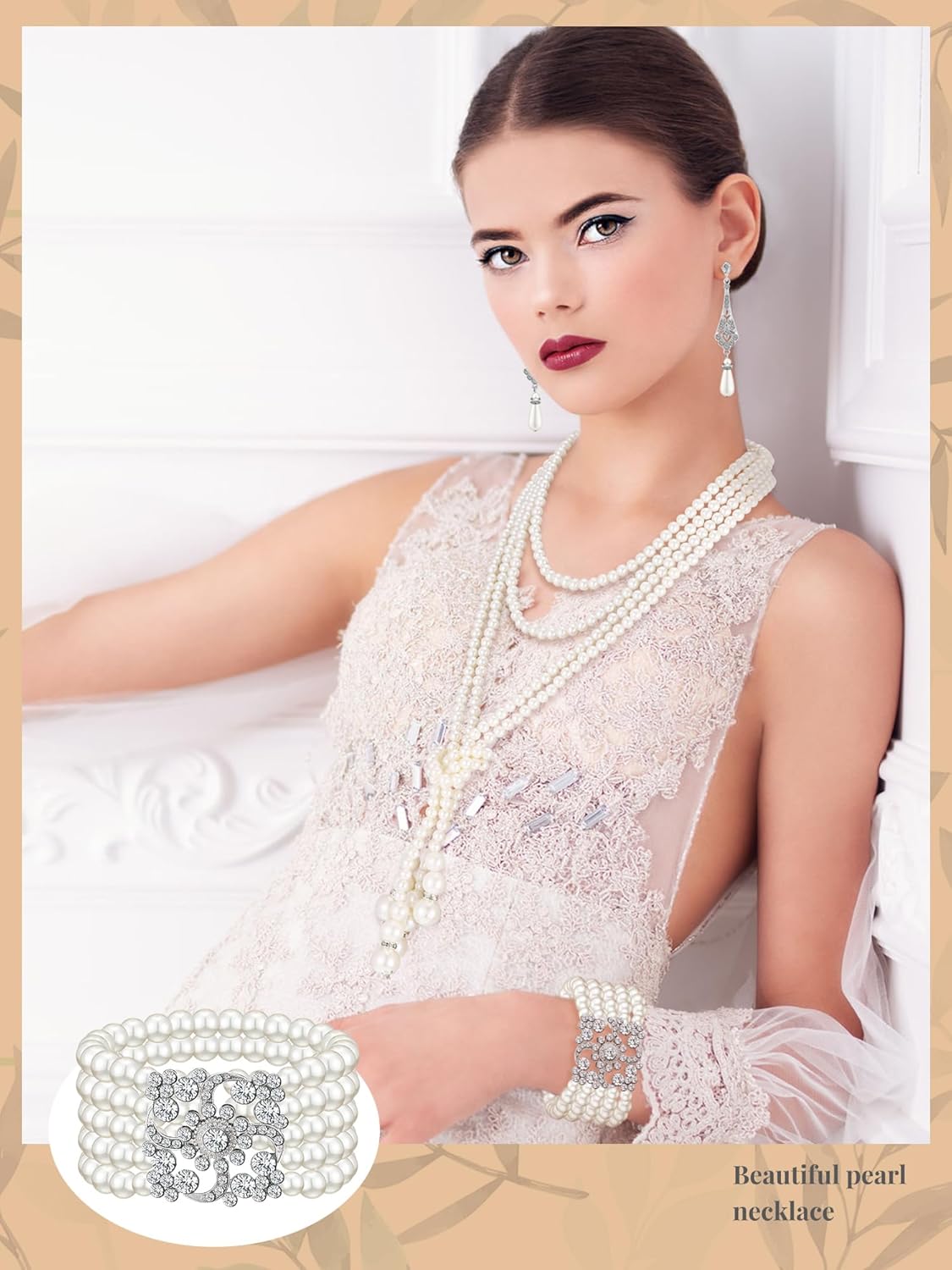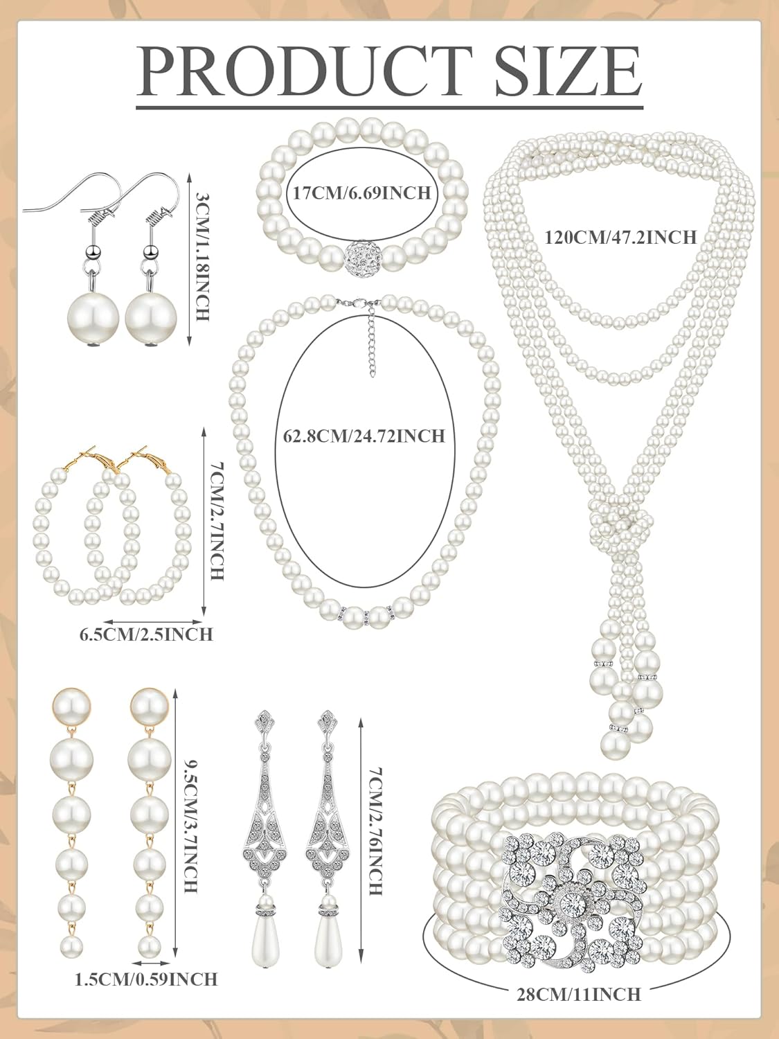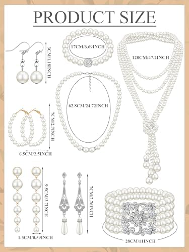 Features: These pearl sets for women provide you with enough choices to collocate according to your favors and tastes, you can try a lot of collocation ways. You can send these jewelry sets for women pearl as ideal gifts to people you love and care about, such as your family members, friends, classmates, neighbors and so on, to show your support. They will be grateful for your kindness, and your relationships will be promoted. Specifications: Material: artificial pearl, alloy, rhinestone Main color: white Size: as shown in the pictures Package includes: 2 x Pearl necklaces 2 x Bracelets 4 Pairs of dangle earrings Notes: Manual measurement, please allow slight errors on size. The color may exist a slight difference due to different screen displays. Small parts are included in the package, please take care of little kids in case of swallowing risks