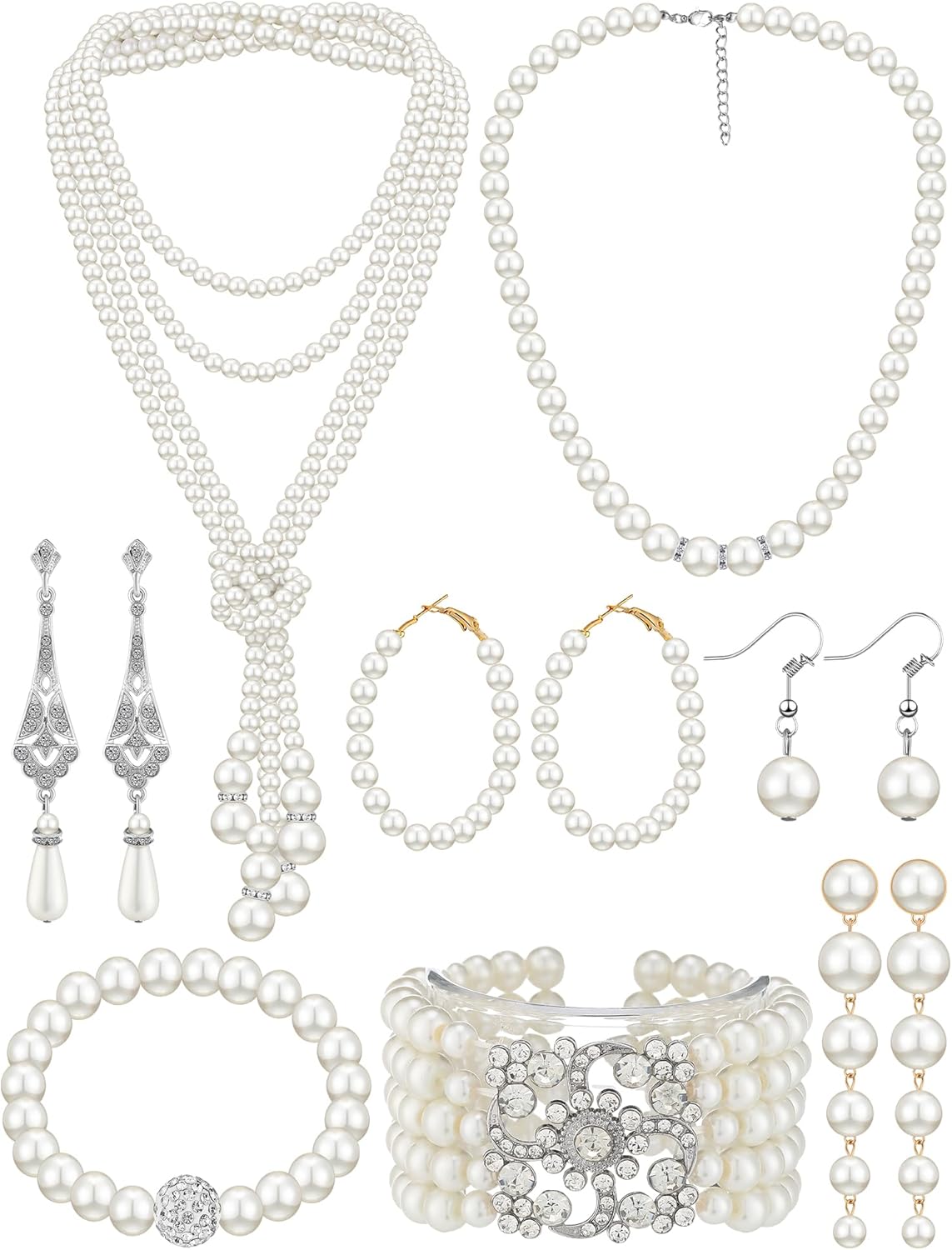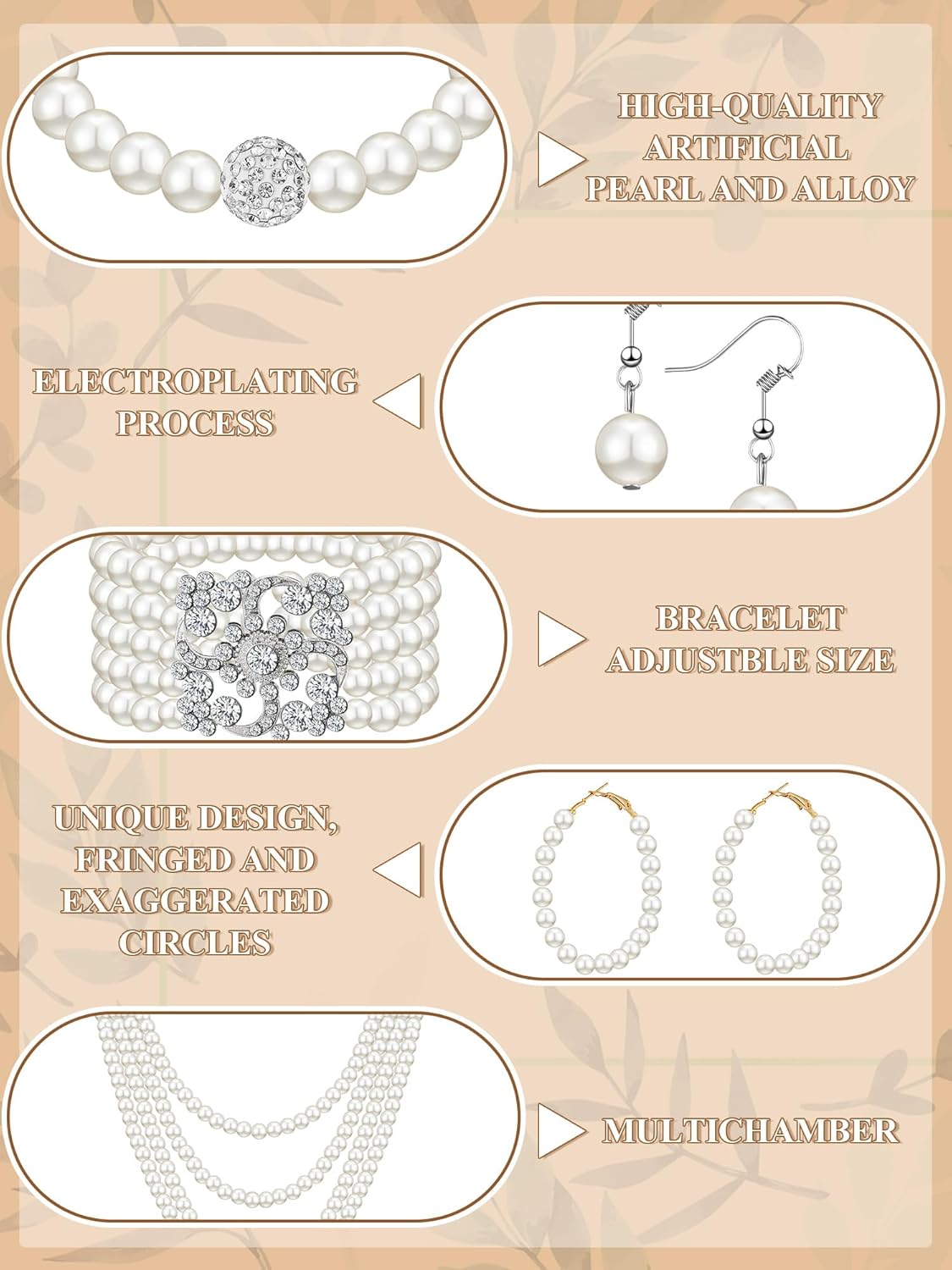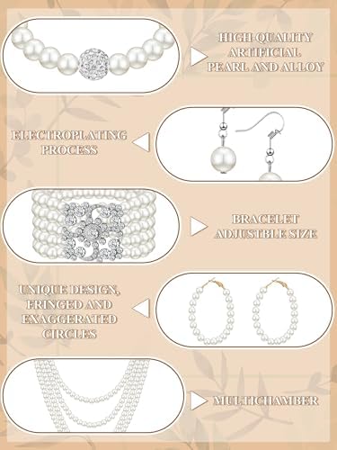 - Delicate Pearl Jewelry Set: you will receive 2 pieces of pearl bracelets, and 2 pieces of faux pearl necklaces, and 4 pairs of pearl earrings from pearl accessories for women, 8 pieces of items in total, enough to meet your uses and replacement needs, and you can also share them with others