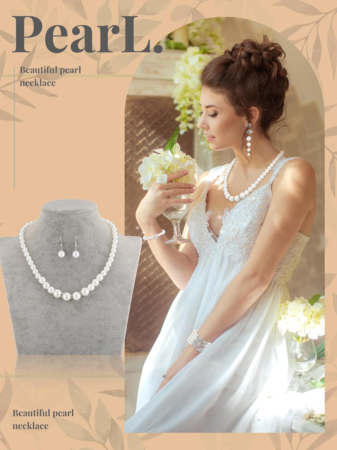 - Easy to Match: the pearl earrings and necklace set for women can match up with a lot of outfits, such as evening dresses, suits, dresses, performance costumes, skirts, shirts and so on, making you attractive and charming
